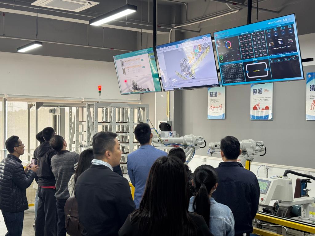 代表团一行在本校工作人员的陪同下,深入教学实践一线,依次走访了创科楼电商直播基地、智能制造实训基地以及院士楼健康医学院仿真医院。