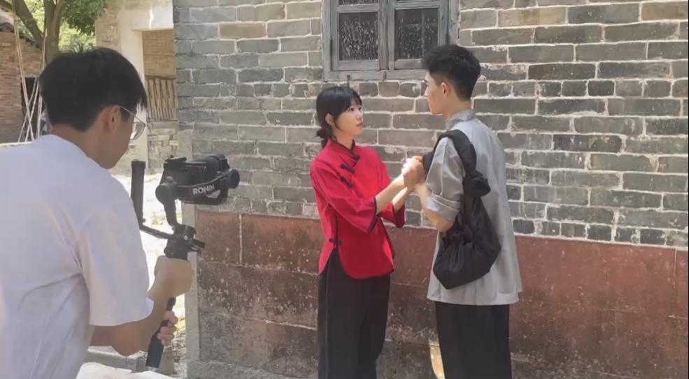 为深入贯彻落实习近平总书记关于“大思政课”建设的重要指示批示精神,充分发挥高校思政课立德树人关键课程作用,引导学生增强“四个意识”,坚定“四个自信”,9月13日至14日,我院联合校团委师生前往新塘镇瓜岭村,拍摄微电影《宁远楼的故事》。