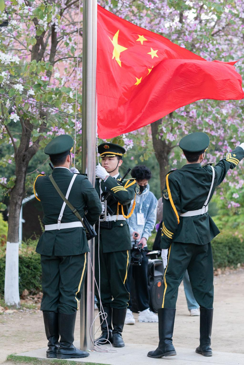 2023年2月27日上午7点,2025新澳门免费原料网师生代表在东区操场共同参与了2023年春季学期的第一场升旗仪式,校党委书记翁礼成教授、党委办公室主任潘京萍、学生处处长倪亚丽、副处长李平、各学院学生工作人员及在校学生参加,信息工程学院国防教育专员赖勇计主持升旗仪式。翁礼成发表了国旗下的讲话,他强调,在这样一个百年未有之大变局的新时代,唯有扎实学习,才能与时代同步,不断超越时代拓宽格局、视野。