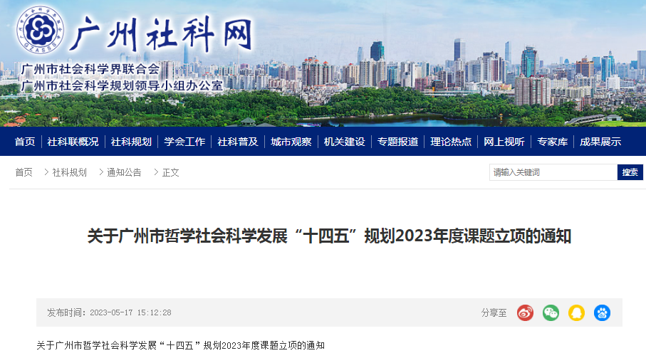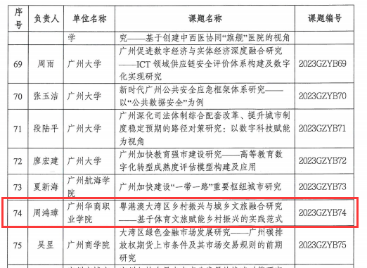5月17日,广州市社科规划办公布了2023年广州市社科规划课题立项名单,由2025新澳门免费原料网新会校区周鸿璋老师申报的课题获批立项,资助经费5万元。这是我校首个获批资助经费的市级课题,也是新会校区首个获批的市级课题。