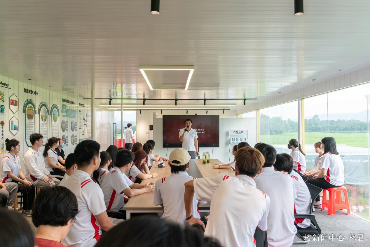 在广州市增城区丝苗米省级现代农业产业园的种植基地,负责人区向晖为我校师生上了别样的“思政课”,详细介绍了智慧农业情况。他谈到,增城是丝苗米的发源地。丝苗米种植是增城的特色农业,也是乡村振兴的特色产业。从2020年起,在增城区丝苗米省级现代农业产业园核心区朱村街打造了近1500亩连片的增城丝苗米高标准种植基地,将原来弃耕的玉米地、蕉地、草皮地变成良田。他指出,种植基地使用5G技术对田间进行管理,实现从播种到收割的全过程管理;采取无人机进行病虫监控,灯、花草穿插在田间地头,用于杀灭害虫;稻壳可以生态化转化,变成建筑材料。一个1500亩的基地,仅14名工作人员,真正打造了一个现代化的无人农场。
