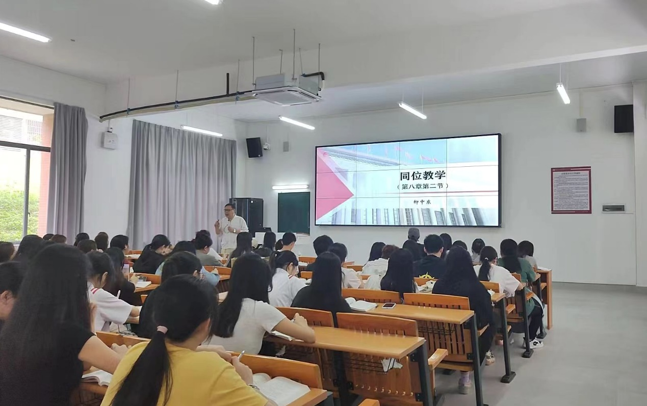 5月30日,思政与通识教学部以深化教学改革为目的,推动公共课与专业岗位相契合为目标,举办了一堂教学改革展示课。本次展示课的主题是“同位教学”模式在思政课教学中的应用。“同位教学”是柳中东教授在多年教学实践中总结和创立的全新教学模式,其内涵是师生通过课岗同位、双情同位(学情、教情)、教学同位(同位磨课、同位授课、同位探究、同位实践)共同完成教学任务,这种教学模式具有坚实的教育学、心理学、教法学基础,是一种特殊的沉浸式教学。