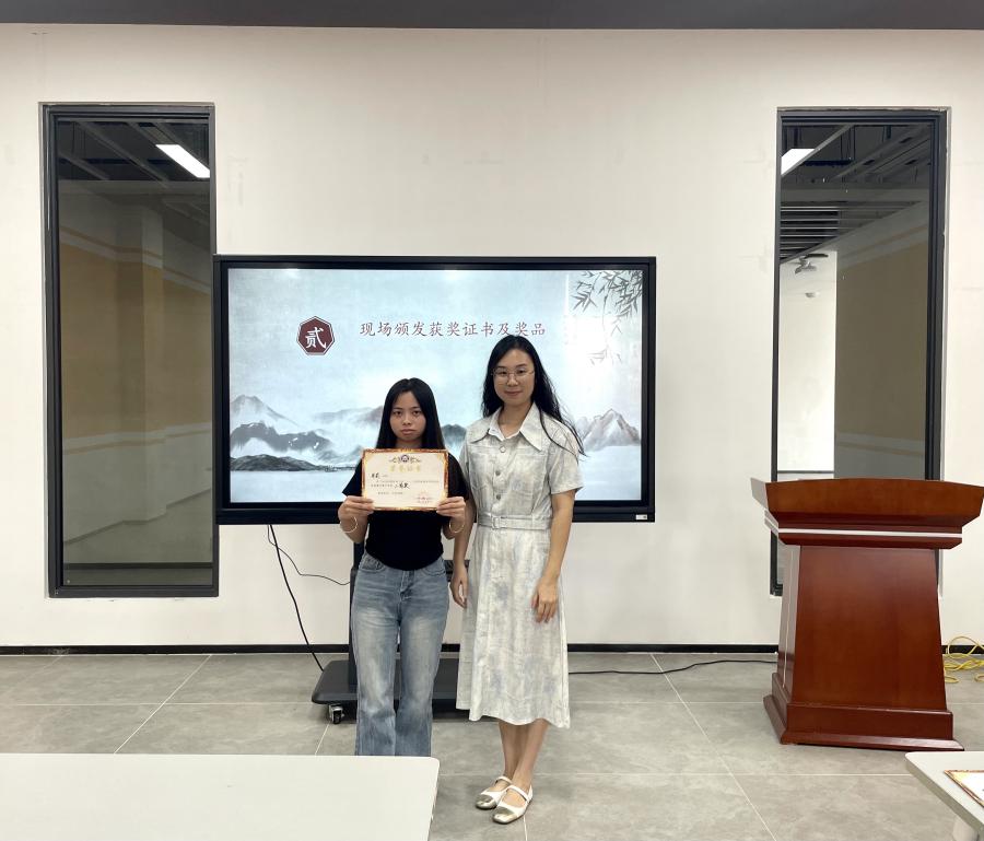 经过激烈的较量,最终决出了一等奖、二等奖、三等奖。成绩前五名选手进入最终面试环节,通过自我介绍、飞花令及一对一问答最终择优推荐2名同学代表学校参加“2025中国诗词大会(粤港澳大湾区选拔赛)”。
