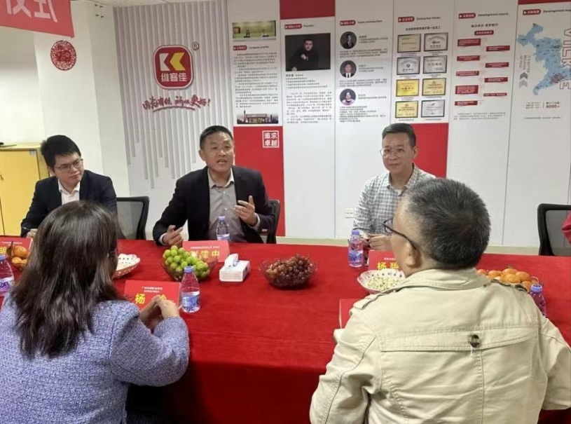 在座谈会上,校企双方围绕产教融合、专业建设、技术创新和学生就业等话题展开热烈讨论。广东维客佳便利店有限公司杨碧峰总经理详细介绍了企业的发展历程、核心业务及未来的人才需求,表示企业目前急需门店管理、市场推广、仓储管理等专业人才。企业将为学生产教融合提供专业支持,共同培育好优秀人才,进一步为学生提供更广阔的实习和就业空间。