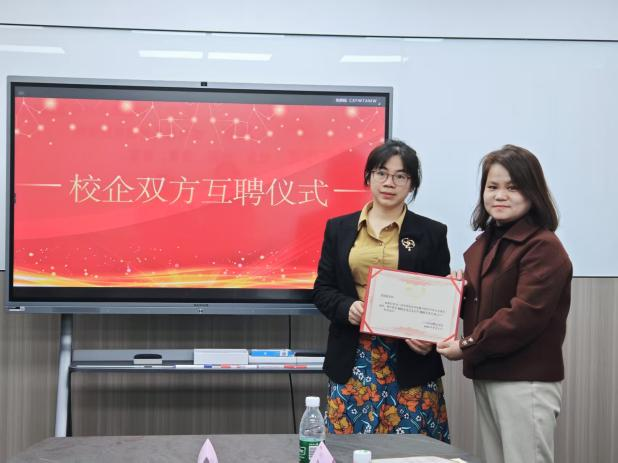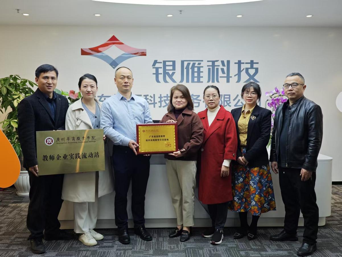 作为校企合作的核心成果,广东银雁科技服务有限公司金融服务与管理专业校外实践教学基地于2024年8月被广东省教育厅认定为“广东省高职教育校外实践教学示范基地”。该基地依托广东银雁科技的行业资源与技术优势,重点围绕银行服务营销、金融科技应用等领域,为学生提供实习实训岗位,同时为教师搭建企业实践与产学研合作平台。此外,双方同步启动“教师企业实践流动站”建设,并举行校企师资互聘仪式,银雁科技5名技术专家受聘为数字财经学院兼职教师,学院共15名教师加入企业咨询顾问团队,为“双师型”队伍建设注入活力。