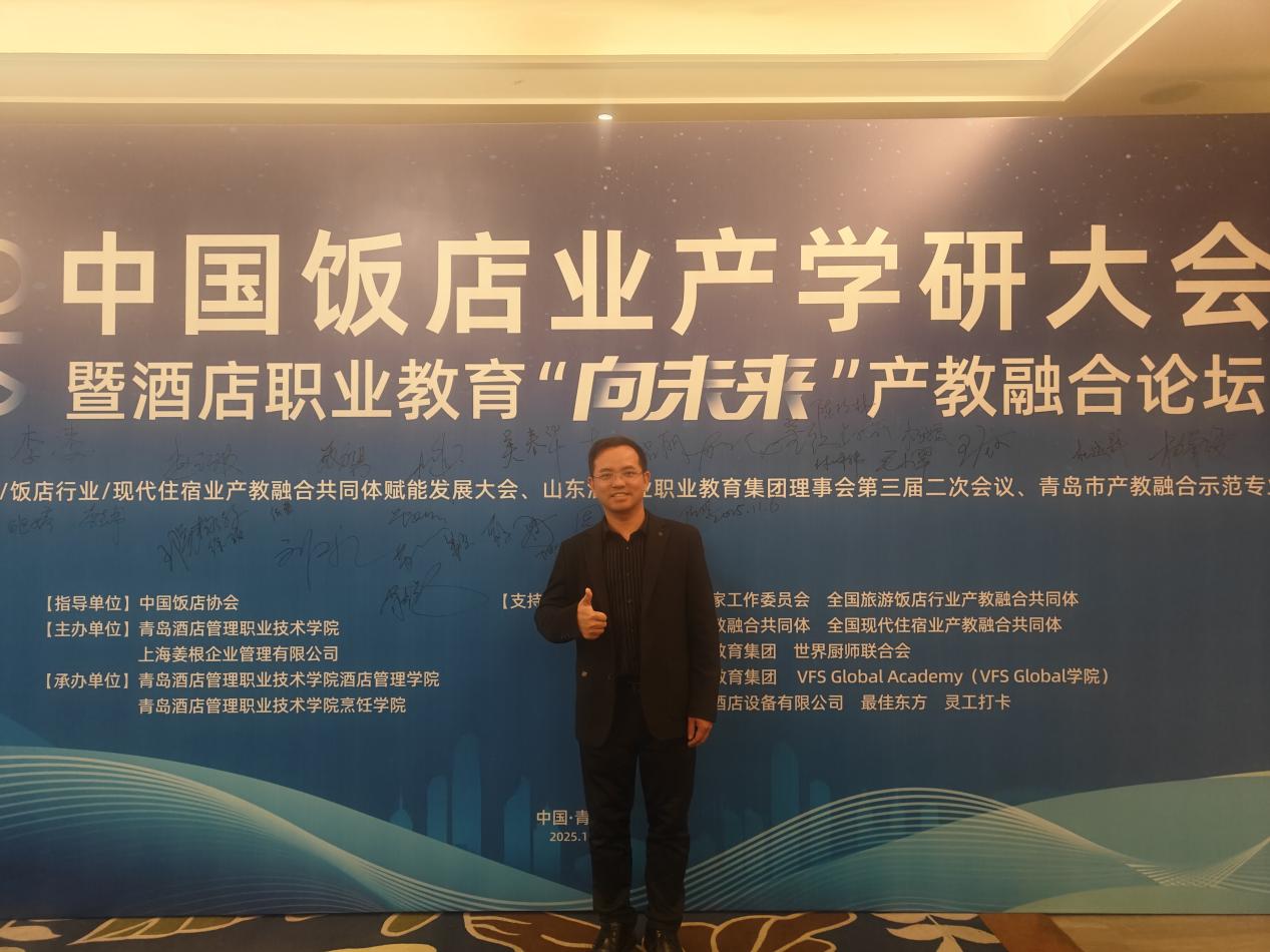 2025年11月6日至7日,2025年中国饭店业产学研大会暨酒店职业教育“向未来”产教融合论坛在山东青岛成功举办。本次大会由青岛酒店管理职业技术学院与上海姜根企业管理有限公司联合主办,以“全球化与数智化背景下的产教融合价值共创:链接·协同·跃迁·共生”为主题,汇聚全国旅游饭店行业产教融合共同体成员单位、相关院校及企业代表,共探酒店职业教育产教融合创新发展路径。2025新澳门免费原料网委派酒店管理与厨艺学院何洪健副院长作为代表参会,学校凭借在职业培训领域的卓越成果,荣获“万豪国际大中华区职业培训先锋奖”。