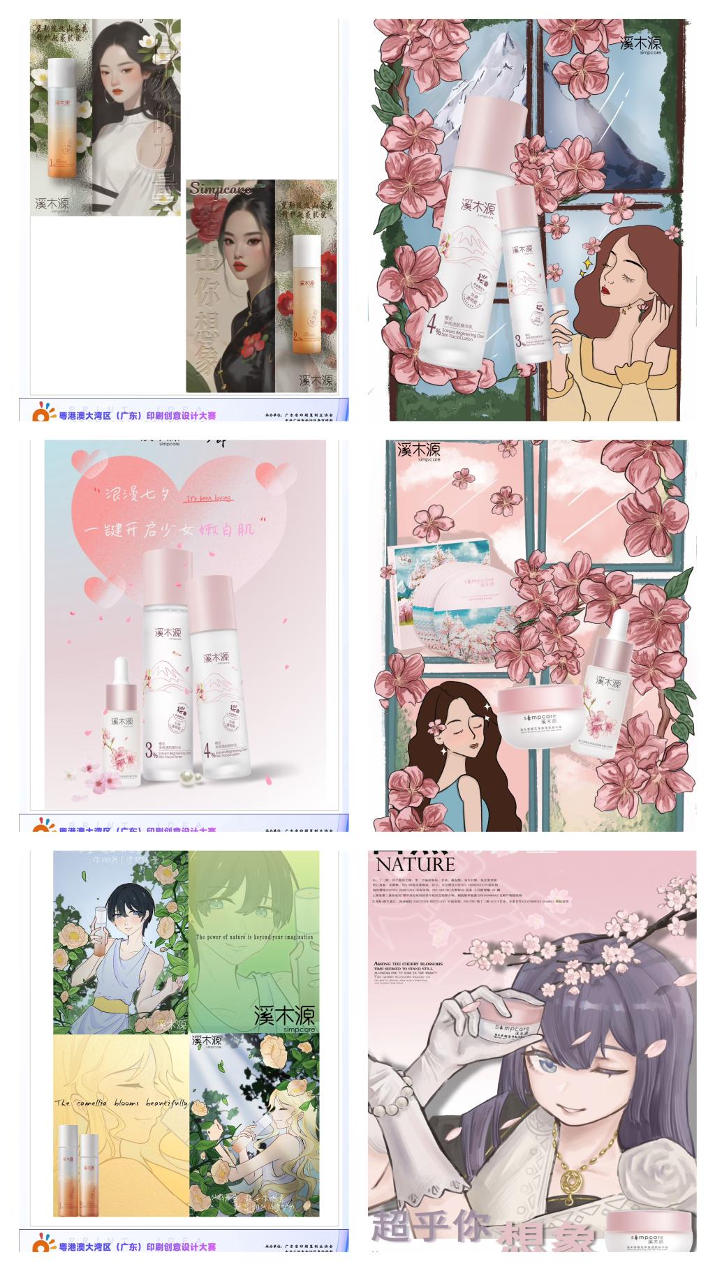 平面海报类 优秀奖作品《樱林沐风1》《浪漫七夕》《力量源自我》《樱花漫窗2》《山椿之吻》《樱花漫窗1》