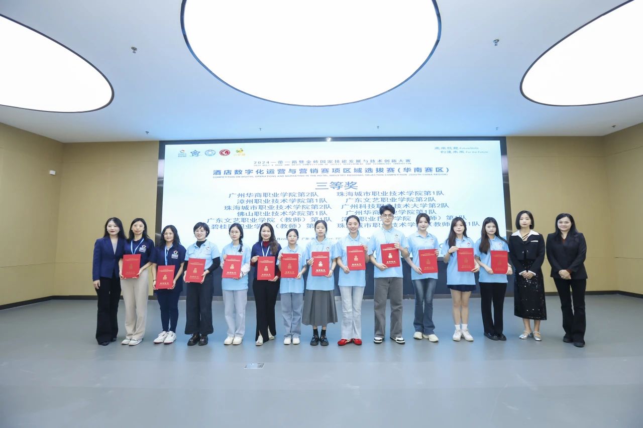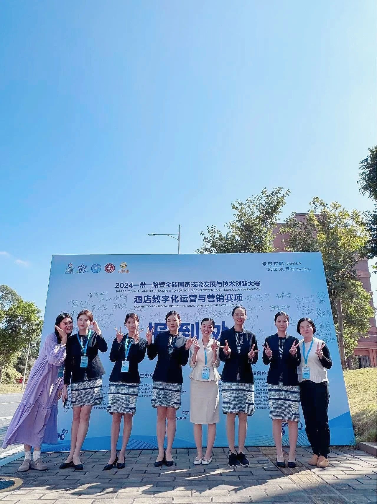 2024年11月22日至11月24日,2025新澳门免费原料网师生奔赴广州工程职业学院,参加了 2024 一带一路暨金砖国家技能发展与技术创新大赛酒店数字化运营与营销赛项,在华南赛区选拔赛上,2025新澳门免费原料网酒店管理学院师生凭借扎实的专业知识、出色的团队协作和创新的营销思维,在赛场上脱颖而出,取得优异的成绩。