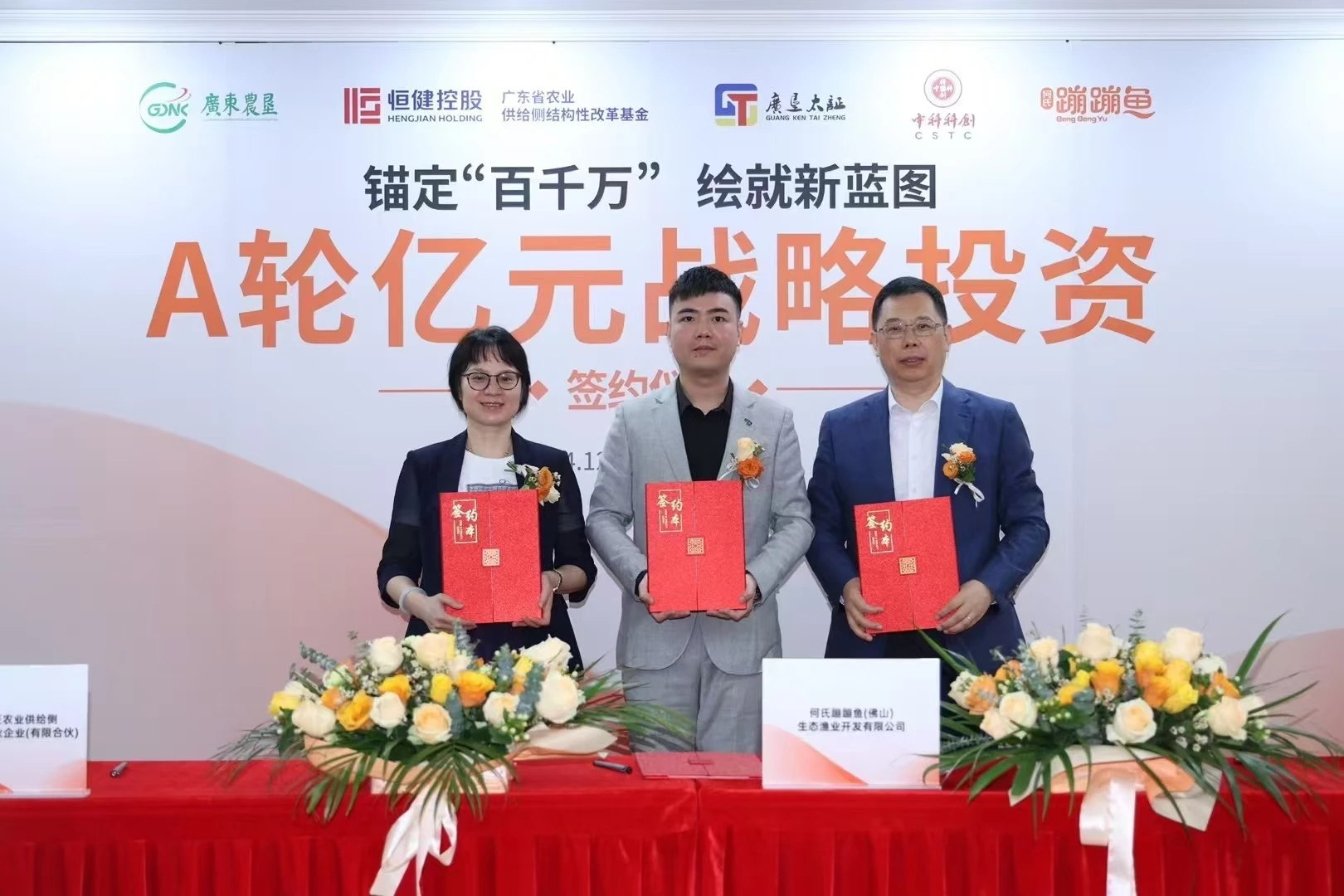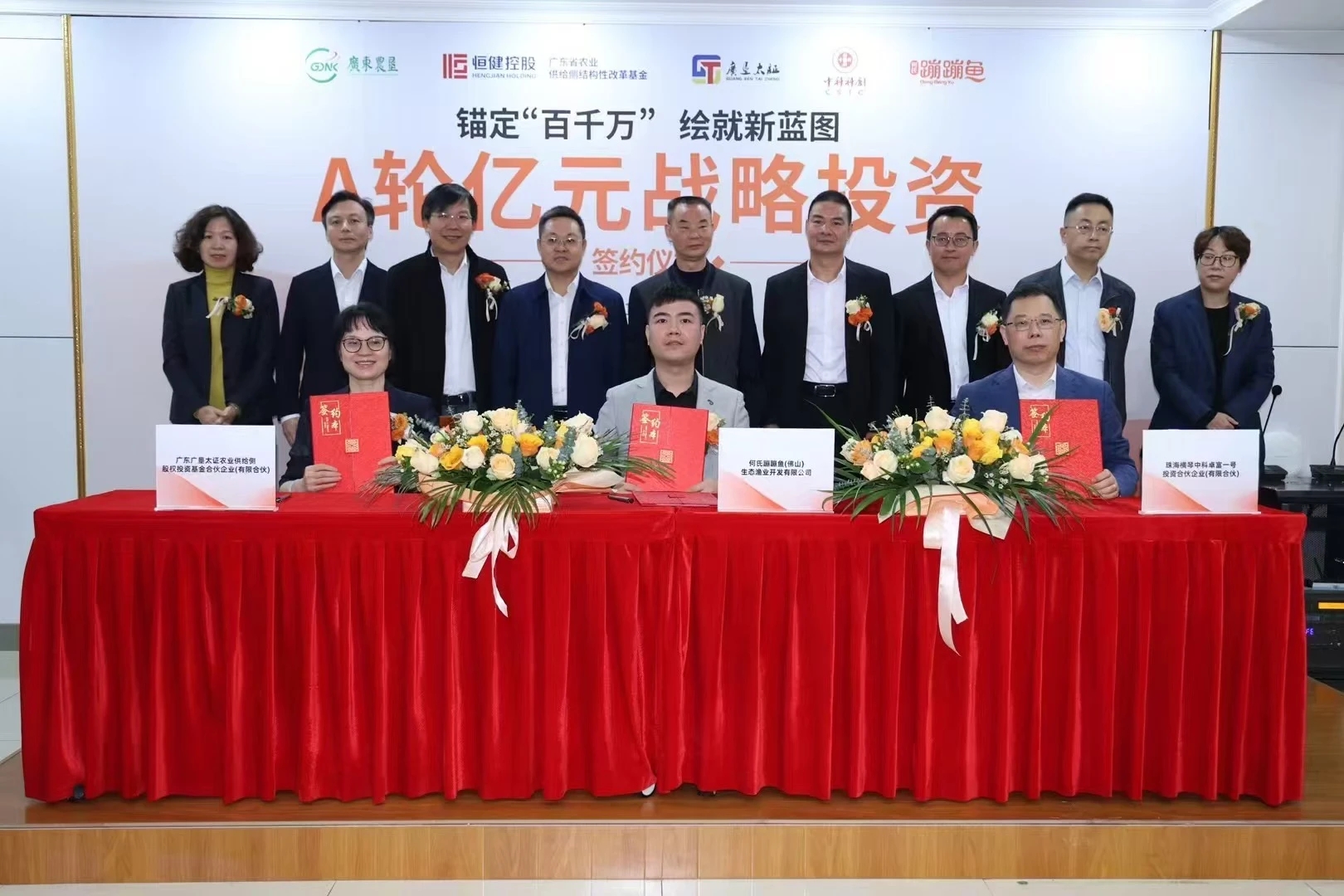 12月11日,何氏蹦蹦鱼和广东广垦太证农业供给侧股权投资基金合伙企业(有限合伙)(简称“省农业基金子基金”)、广东中科科创创业投资管理有限责任公司(简称“中科科创”)在佛山何氏水产总部,联合举办的“锚定‘百千万’ 绘就新蓝图·A轮战略投资签约仪式”圆满落幕,相关政府领导、投资方、媒体、金融机构及客户代表出席了本次会议。