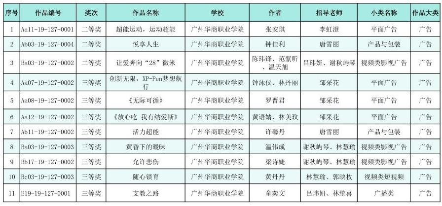 本届大赛由广东省教育厅主办,比赛吸引了来自全省各大高校的127 所院校、 19035 件参赛作品参赛,竞争激烈。华商职院学子们在指导老师的悉心指导下,凭借其卓越的创意和专业的广告设计能力,提交了一系列高质量的作品,在创意构思、视觉表现、市场定位等方面均展现出高水平的专业素养。
