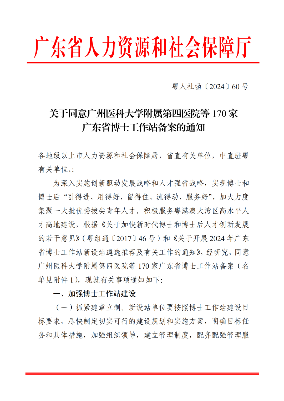 近日,广东省人力资源和社会保障厅发布了《关于同意广州医科大学附属第四医院等170家广东省博士工作站备案的通知》,我校成功获批设立广东省博士工作站,是此次获批单位中唯一一所民办高职院校。