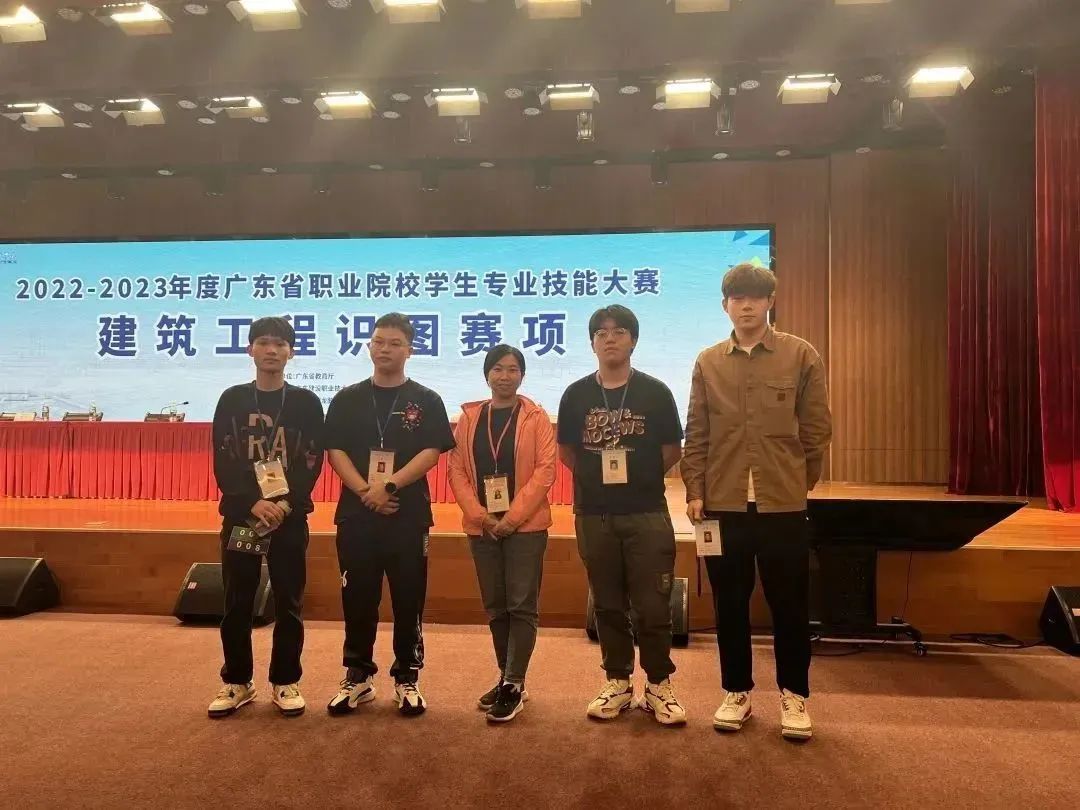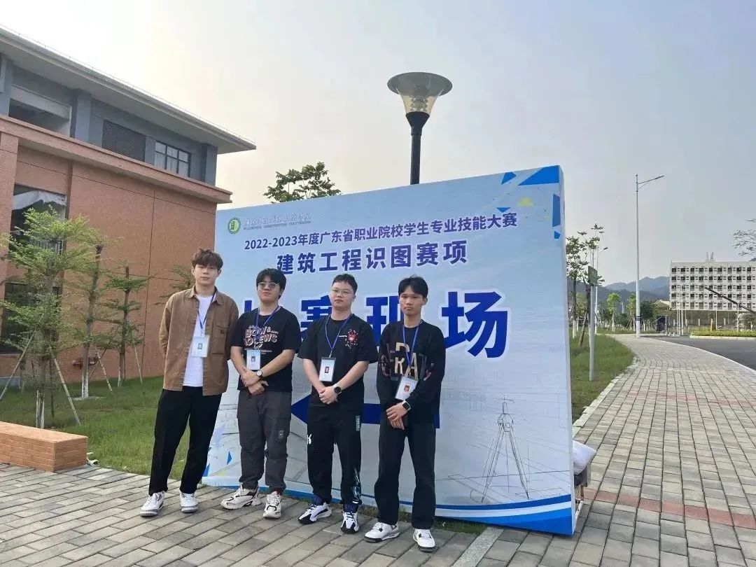 2022-2023年度广东省职业院校学生专业技能大赛建筑工程识图竞赛于2023年4月7日-9日在广东建设职业技术学院(清远校区)顺利举行。智能工程学院曾丽、蔡雪菲两位指导老师带领21工程造价2班黄锐新、曾令越、吴鸿辉、李梓涛4名学生组成2支队伍参与了大赛的角逐。经过两天的激烈竞争,智能工程学院两支队伍最终在来自47所学校的87支参赛队伍中脱颖而出,分别以第22名和第32名的成绩获省级二等奖。