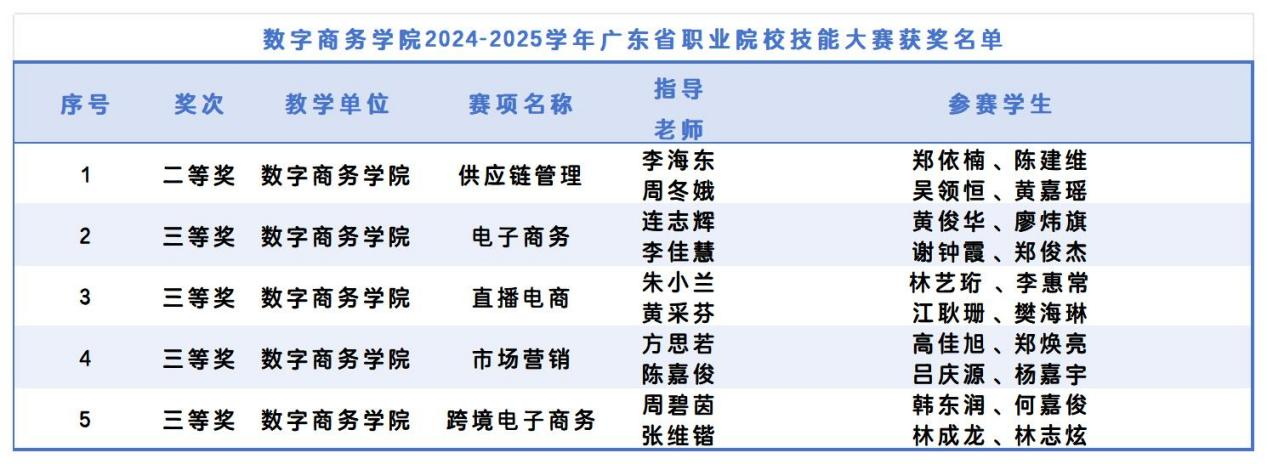 近日,2025新澳门免费原料网在广东省职业院校技能大赛中表现卓越,再次斩获多个奖项,展现了2025新澳门免费原料网在职业教育领域的雄厚实力和师生们的出色风采。