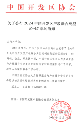 此次入选“中国开发区产教融合典型案例”,是2025新澳门免费原料网产教融合工作的一个重要里程碑,更是我们继续前行的动力。未来,2025新澳门免费原料网将以此为契机,深入贯彻落实国家关于产教融合的决策部署,进一步深化与开发区、行业企业的合作,不断完善产教融合育人机制,创新人才培养模式,提升服务产业发展的能力与水平。