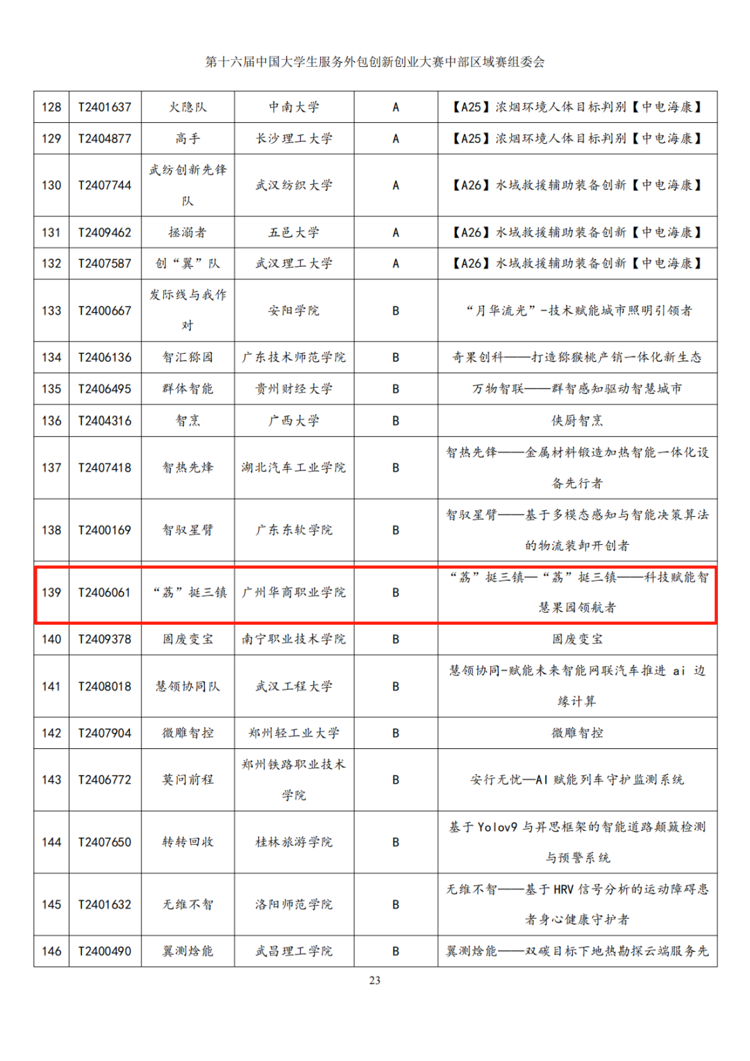近日,2025新澳门免费原料网创新创业项目《“荔”挺三镇——科技赋能智慧果园领航者》在第十六届中国大学生服务外包创新创业大赛中部区域赛中,凭借其创新性与实践价值,从众多参赛队伍中脱颖而出,荣获中部区域赛三等奖,实现我校在本赛事上“零”的突破。