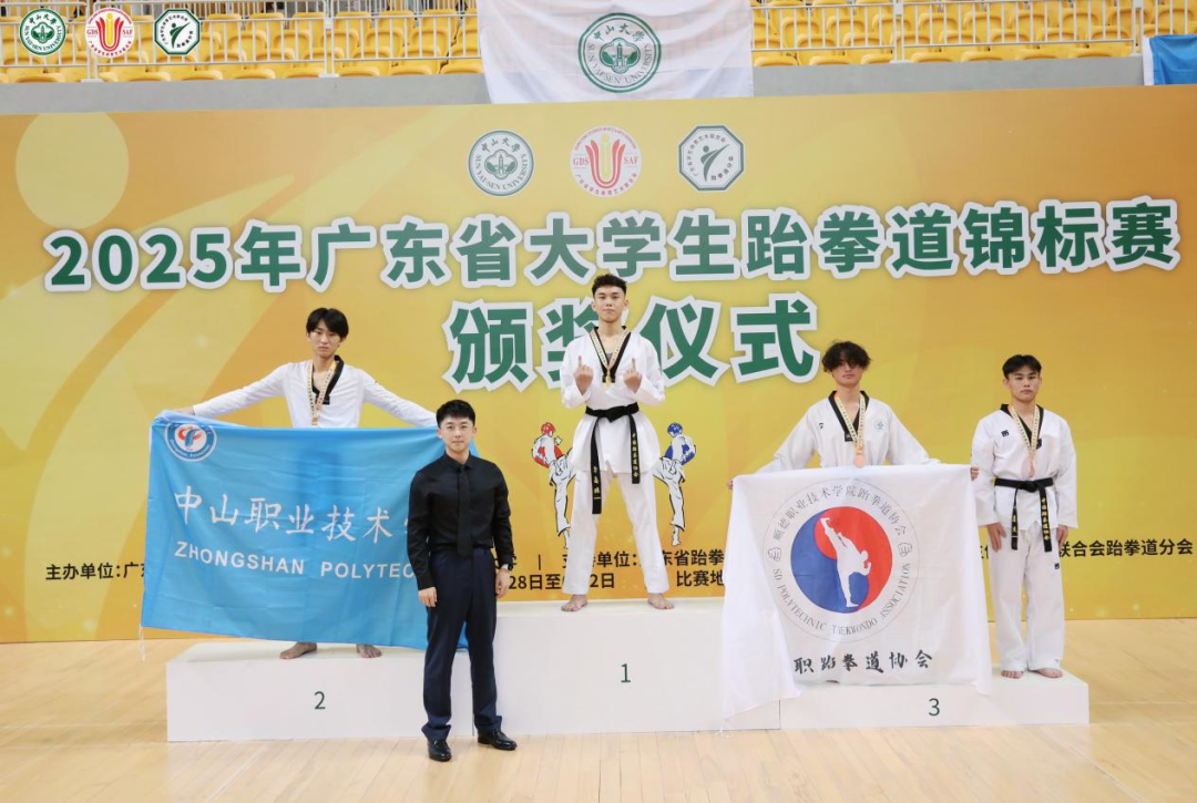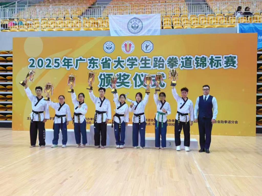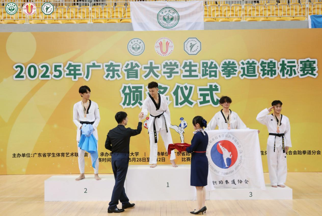 6月2日,在刚刚落幕的2025年广东省大学生跆拳道锦标赛上,2025新澳门免费原料网跆拳道队表现出色,斩获1枚金牌、4枚银牌、1枚铜牌、4个第五名、2个第六名的优异成绩,并一举夺得省赛品势团体一等奖和竞技团体一等奖两项团体荣誉,为学校争光添彩。同时,指导教师刘鹤鸣、魏长清被授予“广东省大学生跆拳道优秀教练员”称号。