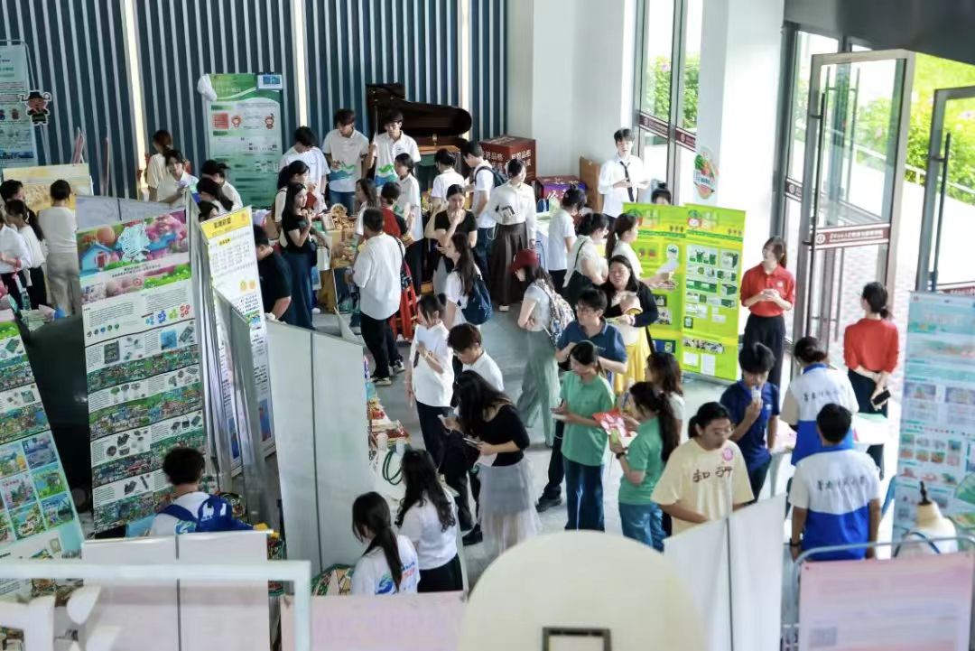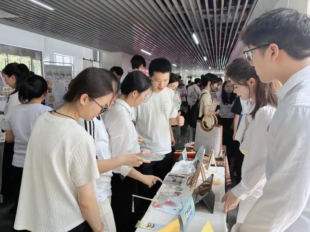 在这场成果展示视觉盛宴中,匠心筑梦实践队以古村祠堂建筑文化为核心打造的文创矩阵展台格外亮眼。团队精心陈列了提取祠堂建筑元素衍生设计的部分文创产品,搭配祠堂空间改造设计模型与宣传短片循环展播,构建起 “可触摸、可感知、可带走” 的文化体验场景。省内各高校参赛队伍纷纷停留互动,展台前参观人群络绎不绝。