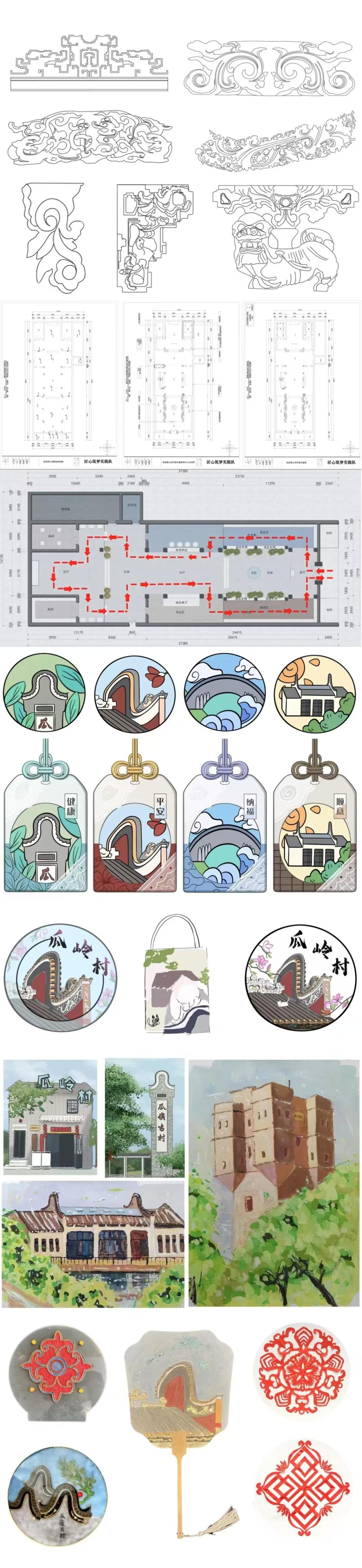 匠心筑梦突击队由建筑与艺术学院和人工智能与数据学院学子共同组成,通过“文化+设计”“文化+文旅”“文化+融媒体”三种形式,形成N个帮扶,深入挖掘祠堂等传统建筑文化,旨在助力古村祠堂建筑文化的保护、传承与宣传,打造生态美、环境美的“和美”乡村建设。
