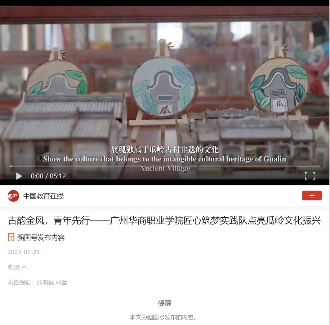 自2023年6月突击队成立以来,已赴增城区10余个乡村,持续设计创作累计服务时长超600小时。通过对祠堂空间进行改造设计、祠堂建筑元素提取,衍生、开发文创产品设计,使古村祠堂建筑焕发新生;通过组织非遗研学等实践活动10余场,制作宣传片20余部,被学习强国等媒体报道40余篇,累计阅读量达20万余人次,提升瓜岭村游客同比去年增长52.3%。团队广泛宣传古村,助力乡村文化振兴。