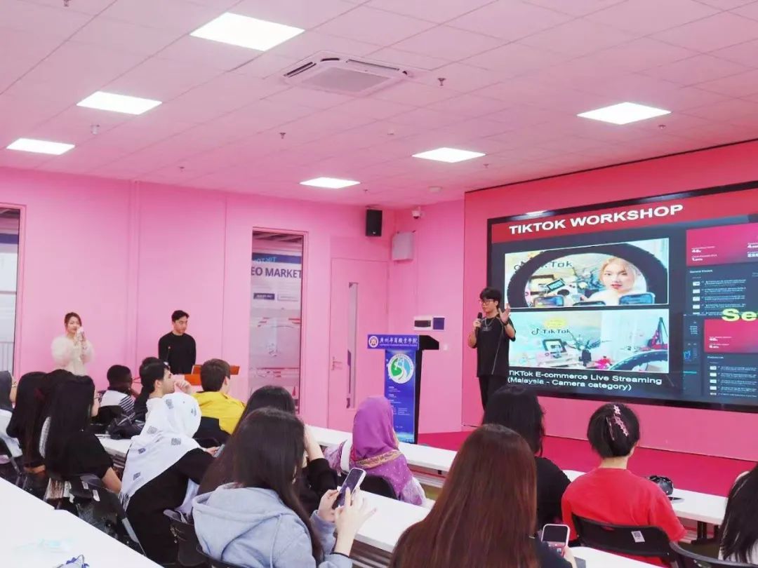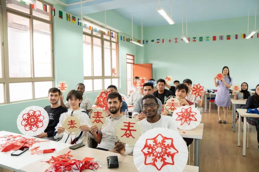 学校秉持国际化办学理念,精心构建特色培养体系。在语言教学上,通过系统化的专业汉语课程,帮助国际学生夯实语言基础,解决专业学习与沟通难题;在文化体验上,通过精彩纷呈的活动,如八段锦与彩带龙民俗体验课、中式面点制作课程、剪纸艺术体验课等,让学生领略中华传统文化之美,以此深化其对中国文化的理解与认同;在技能培养上,学校紧密结合产业前沿与实践需求,开展跨境直播研学之旅等实践活动,让学生在实景体验中掌握电商直播行业技能,全面提升学生的核心竞争力。