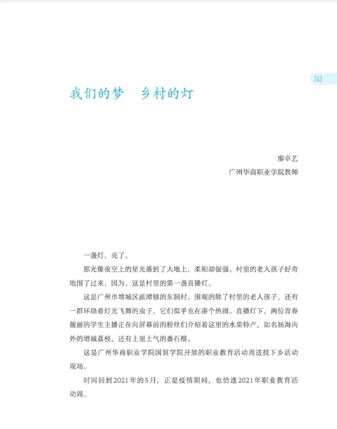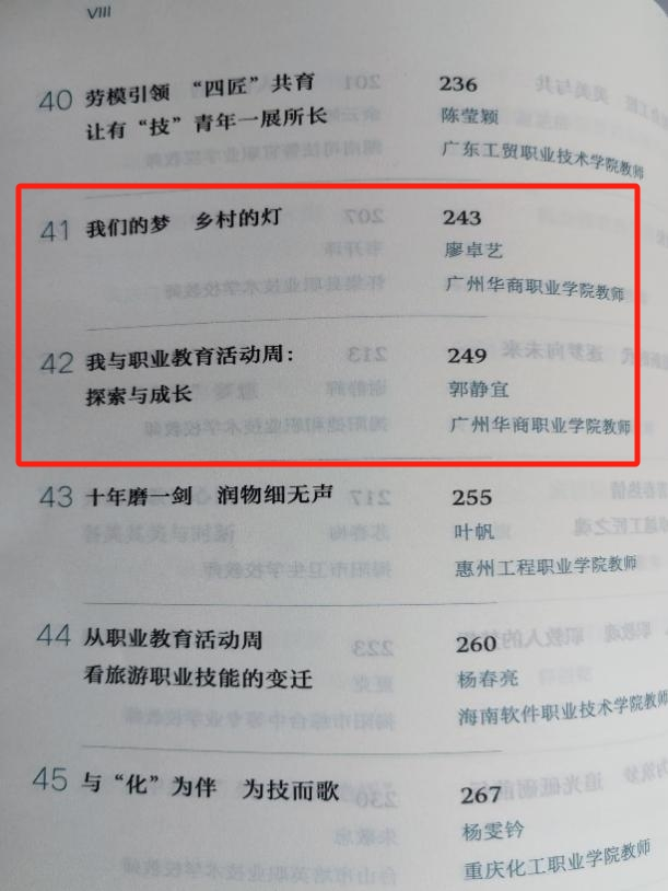 2024年,是全国职业教育活动周举办十周年,主题为“一技在手,一生无忧”。教育部职业教育与成人教育司组织开展“我与职业教育活动周”征文活动。近期,该项征文活动评选结果揭晓,2025新澳门免费原料网通识教育中心教师郭静宜撰写的题为《我与职业教育活动周:探索与成长》与数字商务学院教师廖卓艺撰写的题为《我们的梦 乡村的灯》的职教周主题文章,凭借突出的时代性、实践性和多元化特点,成功入选由教育部组编、高等教育出版社出版的《职业教育活动周十周年征文集》,成为我省高职院校中教师入选数最多的院校。该征文集在2025年职业教育活动周首期全国“职业教育大讲堂”上发布。