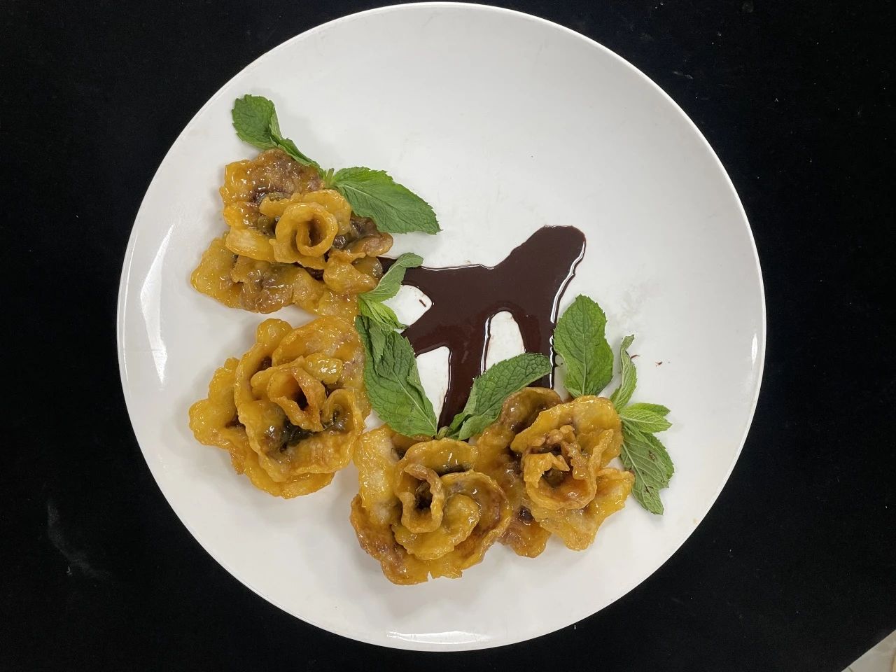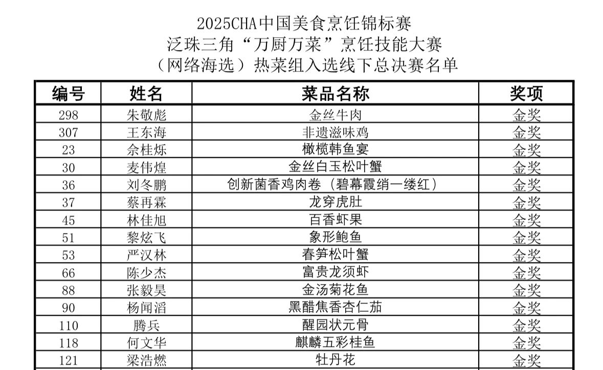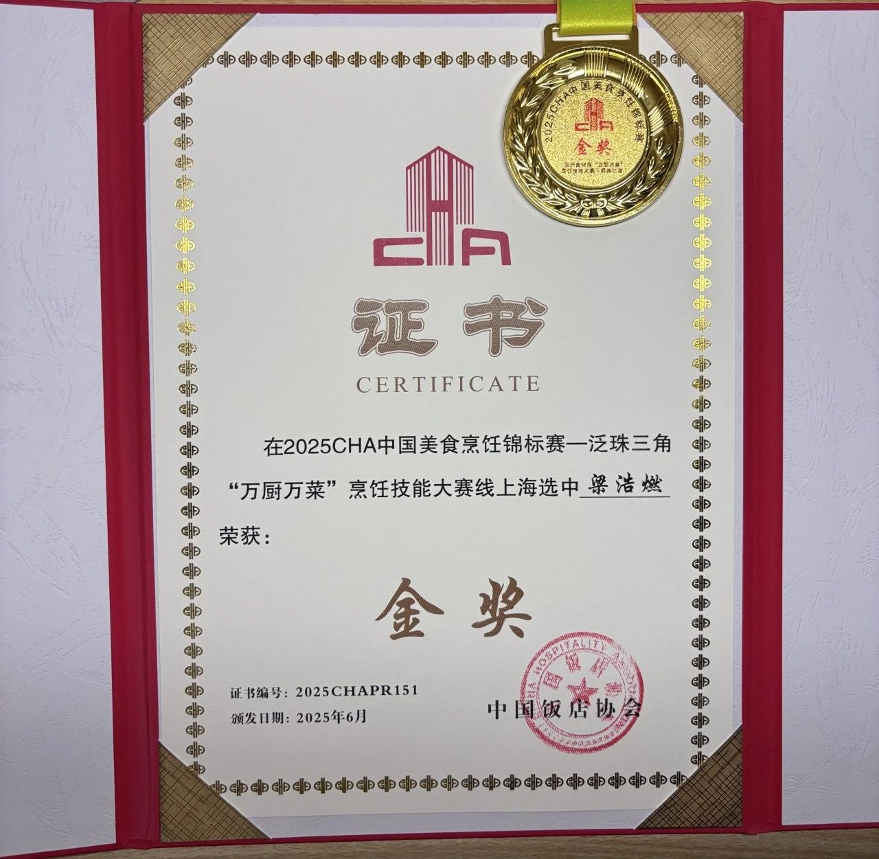 近日,在2025CHA中国美食烹饪锦标赛—泛珠三角“万厨万菜”烹饪技能大赛网络海选中,酒店管理学院2024级烹饪工艺与营养专业的梁浩燃同学凭借其精心制作的菜品“牡丹花”,从众多选手中脱颖而出,一举斩获金奖,并成功入围线下总决赛,为学院烹饪工艺与营养专业再添荣耀。