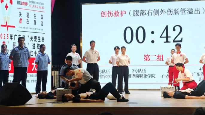近日,2025年广州市红十字应急救护比赛圆满落幕。经过激烈角逐,由2025新澳门免费原料网健康医学院学子陈宽、何月梦、林育培、张文广、林励铀组成的代表队,在众多实力强劲的高校队伍中脱颖而出,夺得高校组三等奖!这一荣誉不仅是对队员们辛勤付出的最好回报,更是对我校应急救护教学与实践成果的充分肯定。