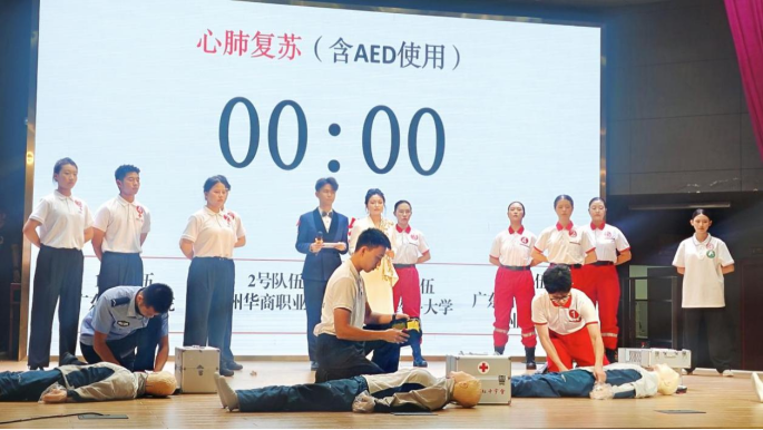心肺复苏环节:陈宽同学动作标准、流程清晰,高质量完成操作,展现了扎实的生命支持基本功。