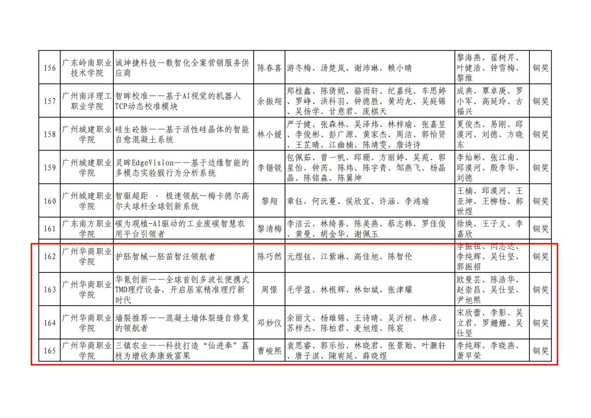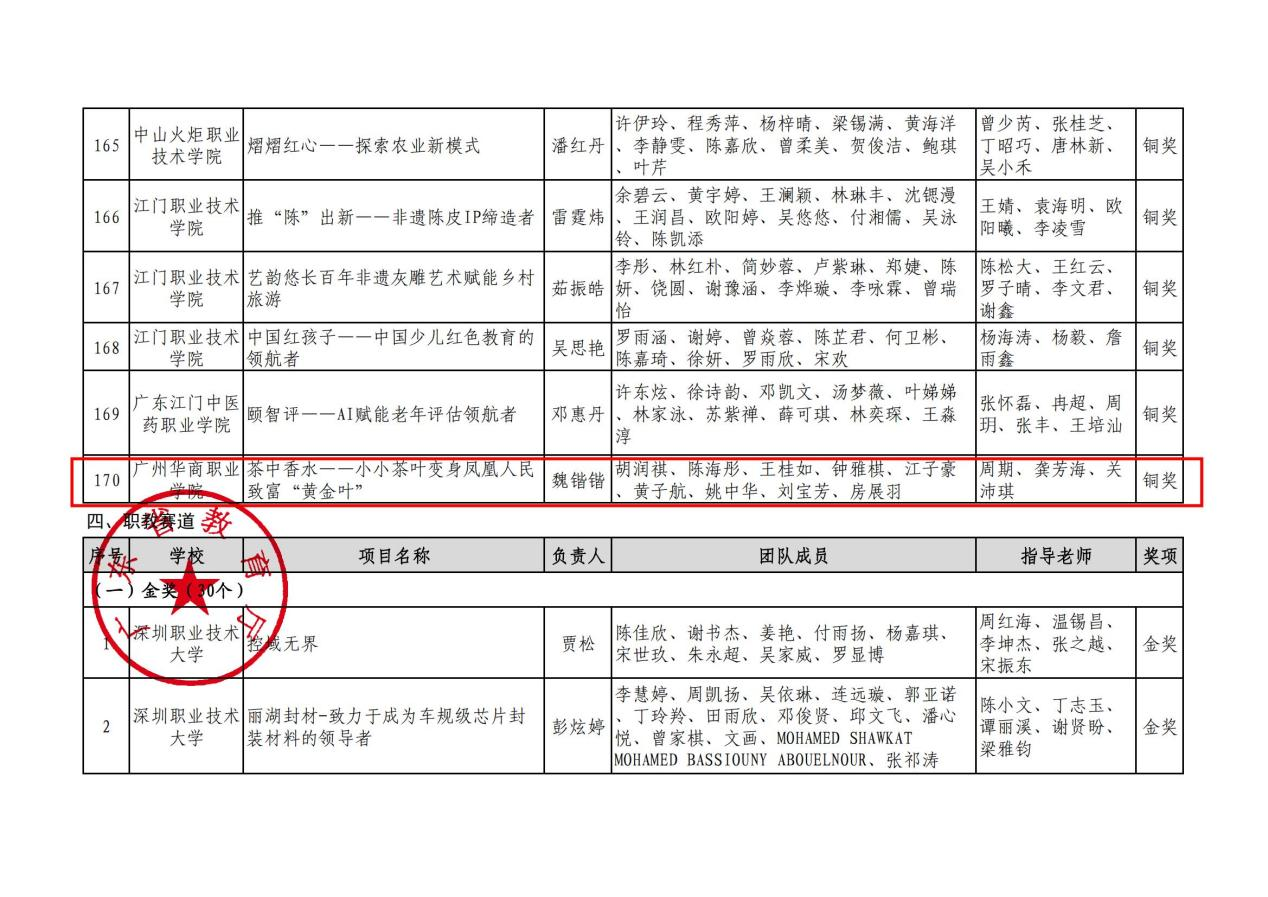 近日,中国国际大学生创新大赛(2025)广东省分赛获奖名单正式公布,2025新澳门免费原料网学子表现优异,共获得六项铜奖,创下我校在该赛事中的历史最好成绩。本次获奖项目涵盖了“青年红色筑梦之旅”赛道和职教赛道,其中职教赛道获得5项铜奖;“青年红色筑梦之旅”赛道获得1项铜奖,这是我校在该赛道上的首次突破,实现了本专科同台竞技的佳绩彰显了我校在专科院校中的创新创业实力。相较于往年的获奖成绩,本次比赛无论在获奖数量还是赛道覆盖面上都取得了显著进步。