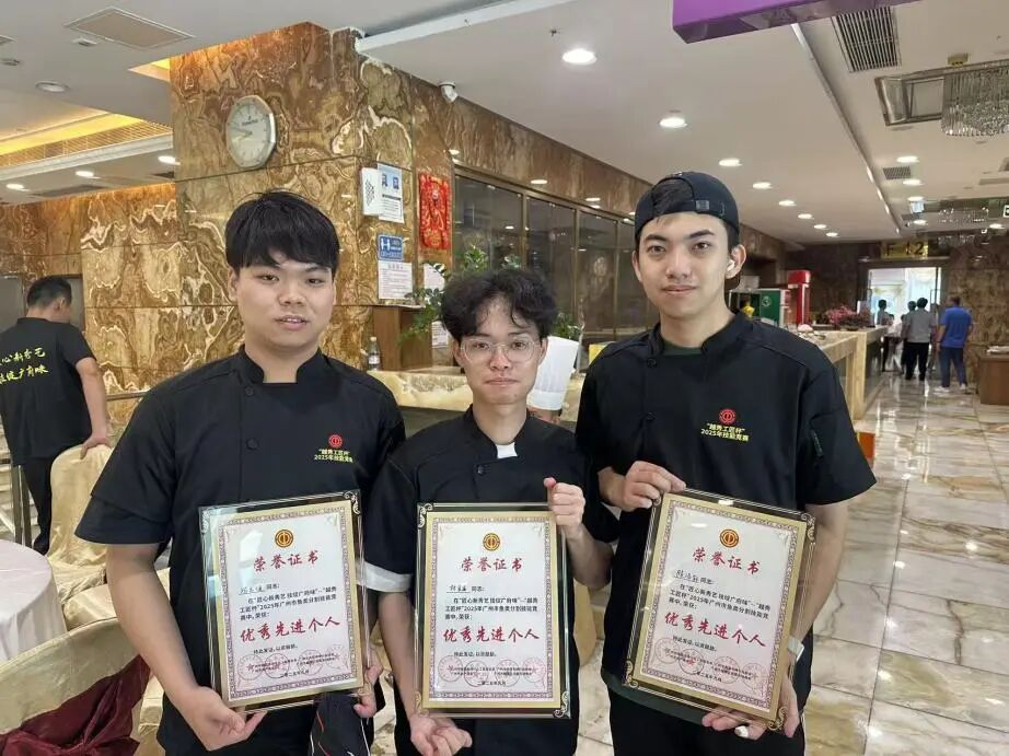 2025新澳门免费原料网酒店管理学院吴浩波老师带领5名烹饪工艺与营养专业的学生林子贵、杨瀚淇、汤志健、林良品、陈洛轩参加技能竞赛,获得三等奖及优秀先进个人奖等佳绩。