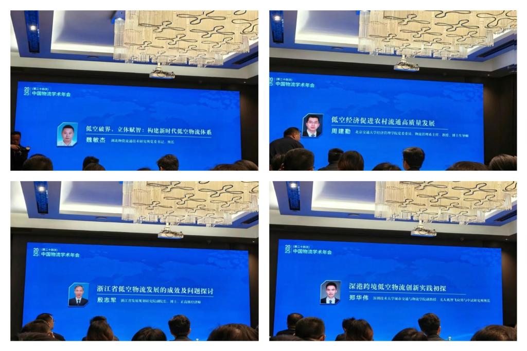 会上,湖北物资流通技术研究所党委书记、所长魏敏杰围绕“低空破界,立体赋智:构建新时代低空物流体系”做主题分享,系统解读了低空物流的发展格局与建设路径;浙江省发展规划研究院副院长殷志军剖析了浙江省低空物流发展的成效与问题,为区域低空物流实践提供了宝贵借鉴;北京交通大学周建勤教授、深圳技术大学郑华伟副教授分别就“低空经济促进农村流通高质量发展”“深港跨境低空物流创新实践”等议题展开深度研讨,呈现了低空物流在不同场景下的创新应用与技术突破。