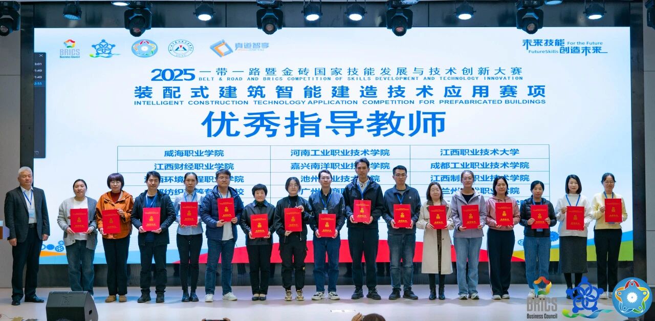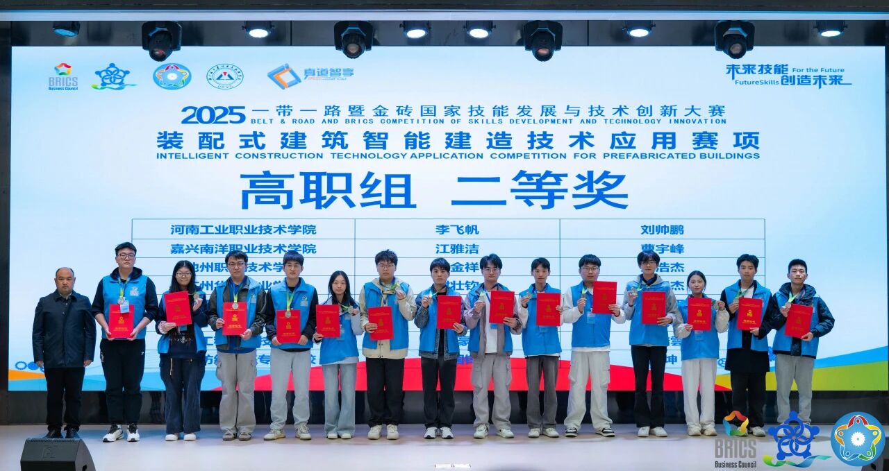 在2025一带一路暨金砖国家技能发展与技术创新大赛—装配式建筑智能建造技术应用赛项全国总决赛中,谢壮钦、邵天杰同学组成的代表队斩获全国二等奖,尽显扎实专业功底与青春风采。