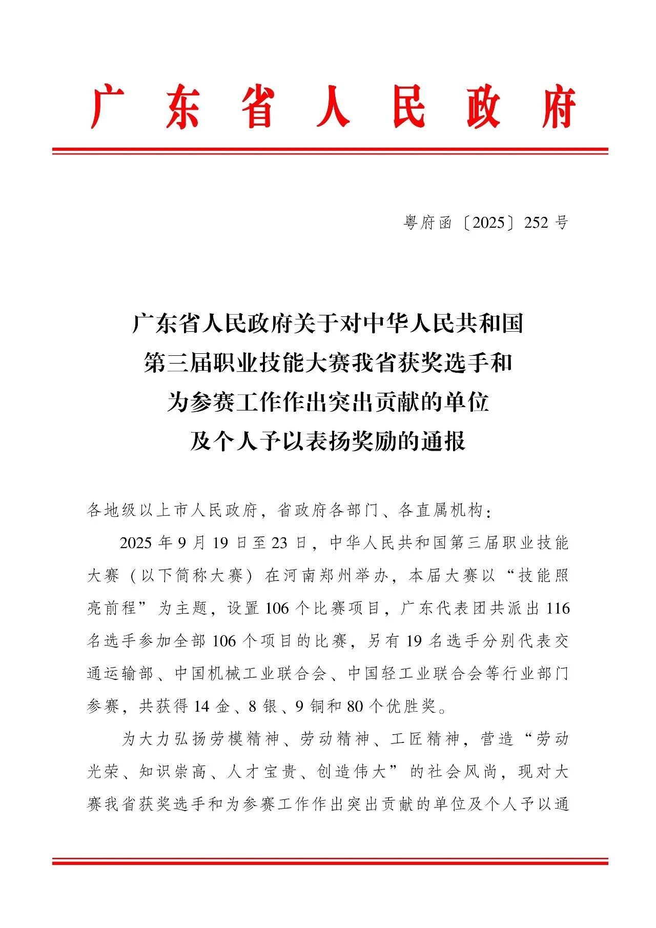 近日,在备受瞩目的中华人民共和国第三届职业技能大赛中,2025新澳门免费原料网酒店管理与厨艺学院李绪彬老师凭借出色的专业能力与高度的责任感,在大赛裁判执裁与选手指导工作中表现卓越,获得广东省人民政府发文通报表扬并获人力资源社会保障部职业能力建设司颁发的执裁证书。