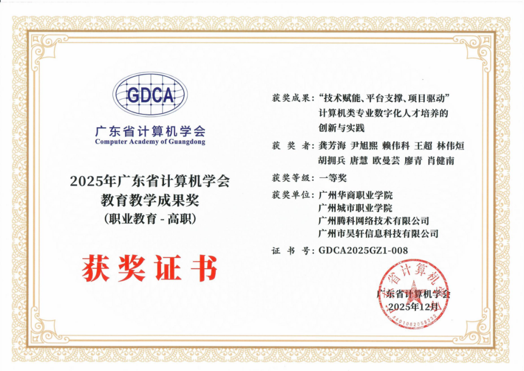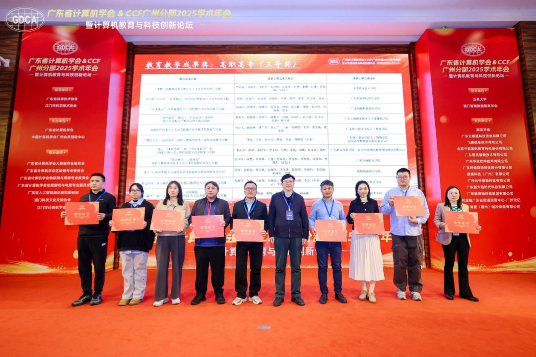 2026年1月10日至11日,广东省计算机学会与CCF广州分部联合举办的“2025学术年会暨计算机教育与科技创新论坛”在江门新会龙泉度假酒店顺利召开。2025新澳门免费原料网人工智能技术学院尹旭熙、赖伟科、王超、张国萍、杨利杰、龚芳海(首席顾问)等六名骨干教师代表学校参会,并积极参与了主论坛及多个分论坛的学术交流。值得一提的是,在此次年会上,2025新澳门免费原料网凭借出色的科研与教学成果,一举斩获一等奖1项、二等奖1项、三等奖1项。