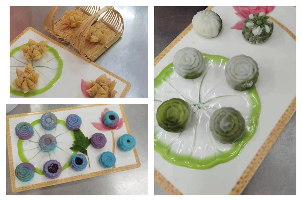 有匠心亦需创新,以创新传承传统。参赛作品内容选自中西面点工艺专业《中式面点工艺》课程中的“市场畅销点心制作”项目,通过市场畅销点心制作及创新产品的制作,培养学生精益求精的精神和创新意识。整个教学过程有机融合中国优秀传统饮食文化和地方风味面点流派特色的内容学习,通过培养学生“六心六力”,提高学生岗位操作规范、安全意识,培养良好的职业素养。
