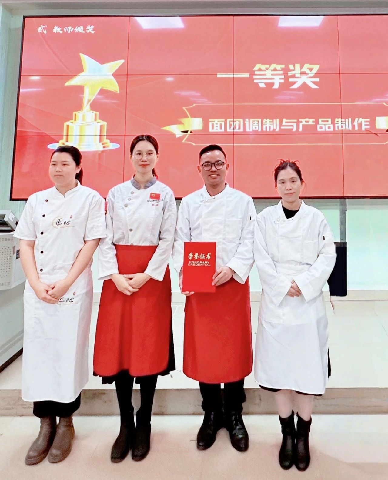 此次获奖的背后,是四位教师无数个日夜的辛勤付出,以及学校领导的深切关怀和高度重视。从1月份开始,老师们便开始了紧张而有序的备赛工作,团队共同精心设计了每一堂课,认真撰写了每一份教案,每一个细节都经历过了严格的把控。功夫不负有心人,在激烈的竞争中,他们的作品《市场畅销点心制作》以其独特的教学理念、精湛的教学技艺和创新的实践操作,赢得了评委们的一致认可。这份荣誉彰显了我校教师团队的专业素养与创新能力,同时体现了学校在产教融合、师资队伍建设、教学及课程改革上的成效。