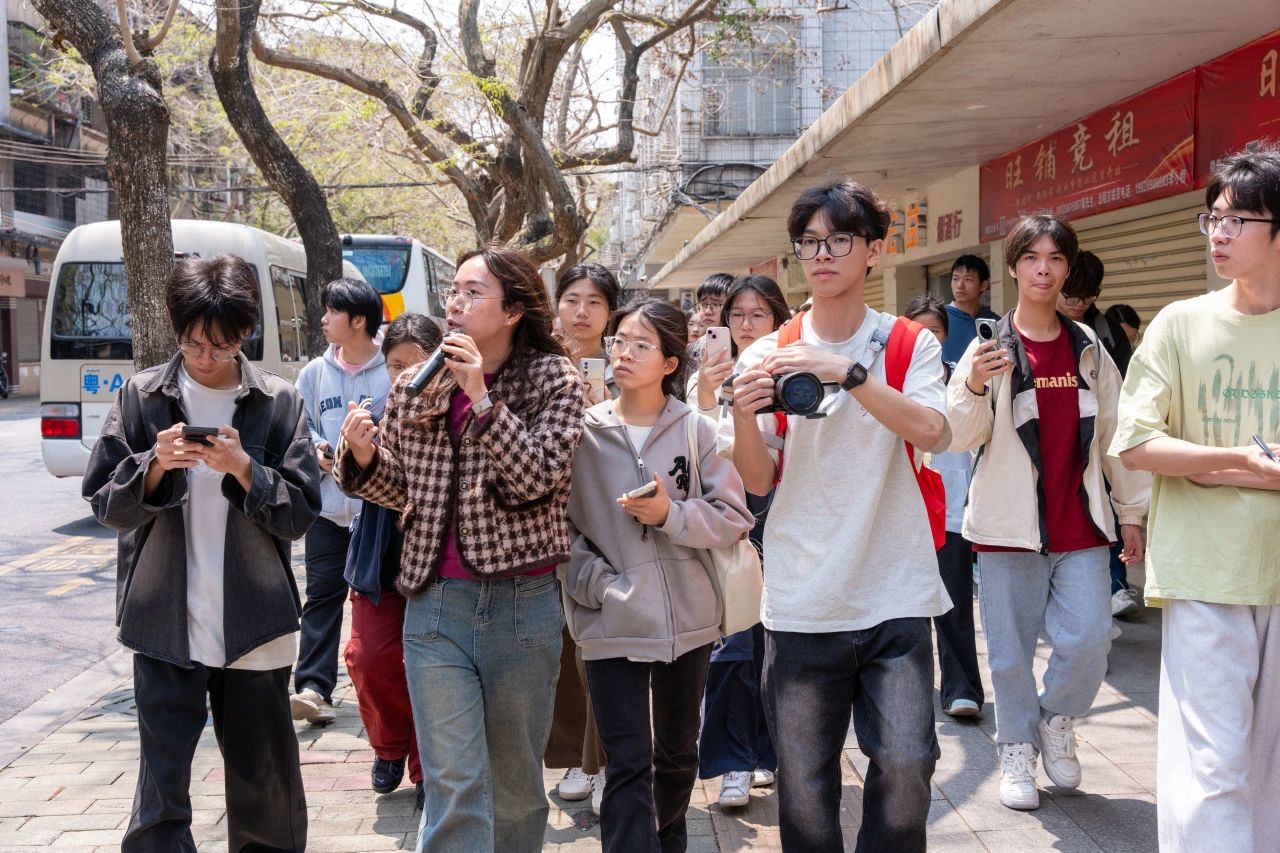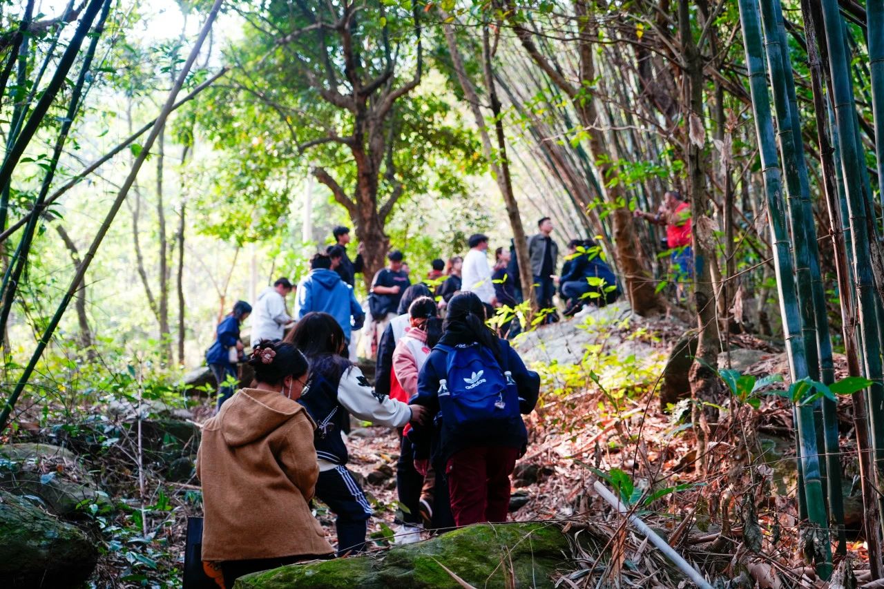在村支书的讲解中,师生们了解到"小㘵"村名的由来:村前3000亩碧波荡漾的水坑中央,一条形似蛟龙入海的山岗㘵蜿蜒起伏,活灵活现地绵延一公里之遥。漫步村中,参赛队员们不仅邂逅了保存完好的古村落建筑群,更惊叹于这里丰富的原生植被——娇艳的吊钟花、烂漫的杜鹃、明艳的无忧花次第绽放,古老的杨桃树、仁面树郁郁葱葱,更有连绵的竹林随风摇曳,勾勒出一幅生机盎然的岭南风情画卷。
