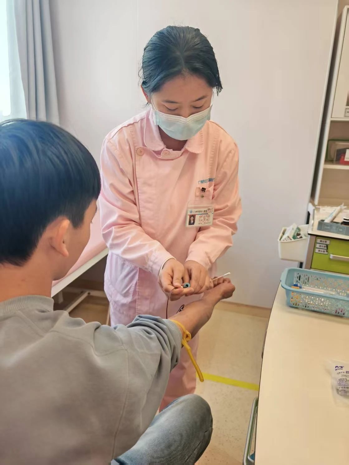 我始终保持耐心与细心,用温暖的态度去安抚患者和家属。在各科室轮转的过程中,我不断的学习和积累经验,努力做到技术操作熟练,待患如亲。每当有新患者办理入院,我都会第一时间迎上去,带领他们熟悉科室环境,细致的介绍病房设施、医护团队以及日常作息安排,消除他们初来乍到的陌生感与紧张感。