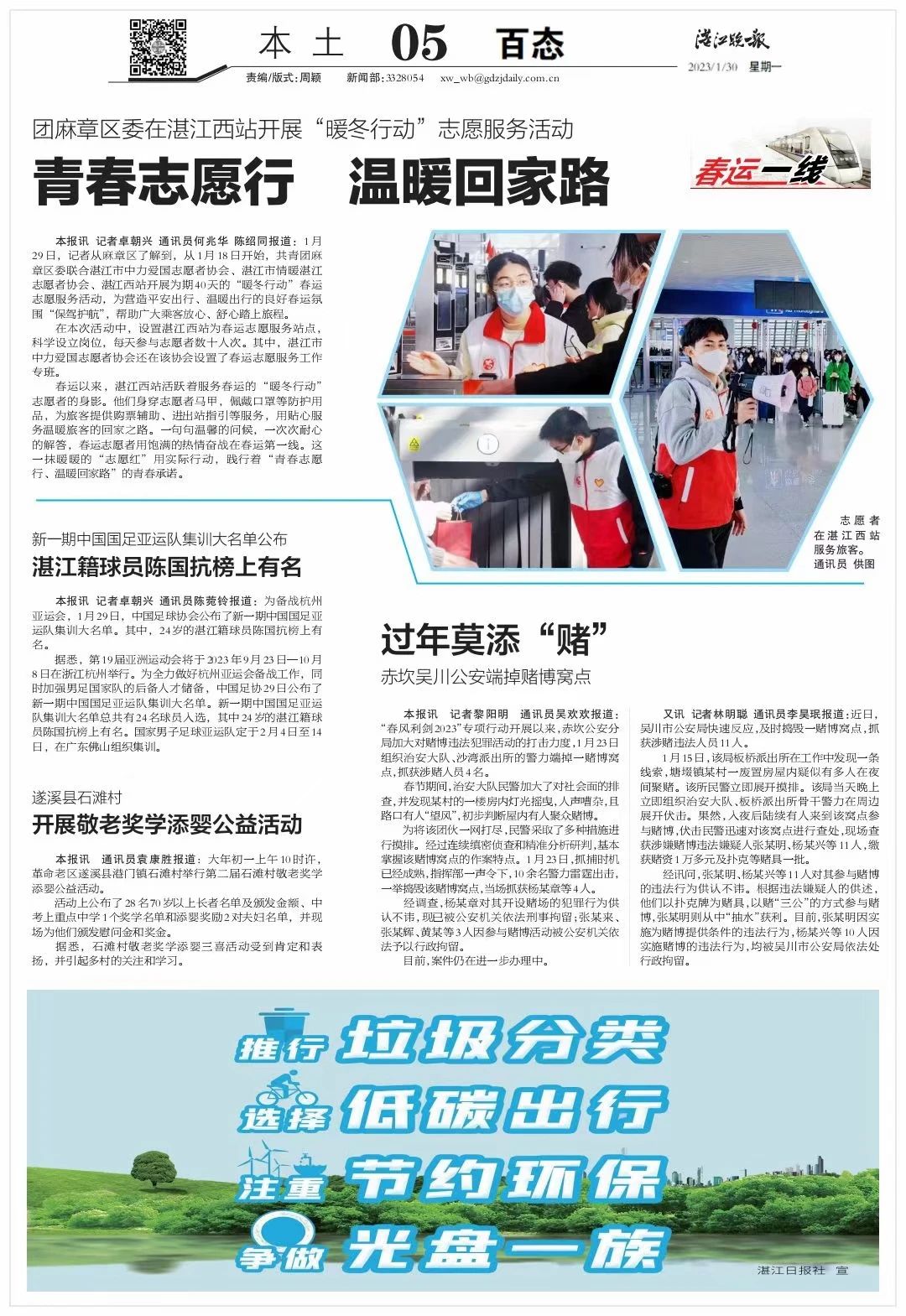 苏文贤说:“志愿服务已成为我学习之外最日常的内容。”自2022年6月起,他的志愿服务时长累计达1189小时,其中春节参与的湛江西站春运志愿服务是他印象最深的项目之一。自2023年1月18日春运启动后,苏文贤身着志愿者红马甲,穿梭于湛江西站内,为返程旅客指引高铁路线、协助检票验票、帮助旅客搬运大件行李过安检等等。