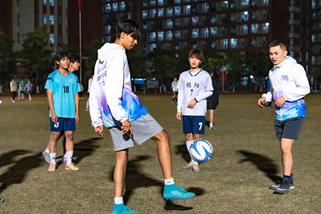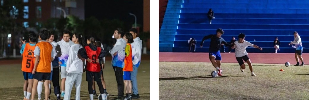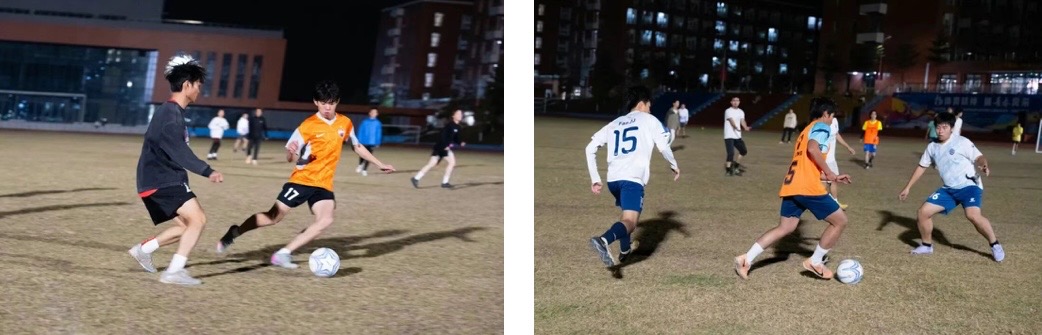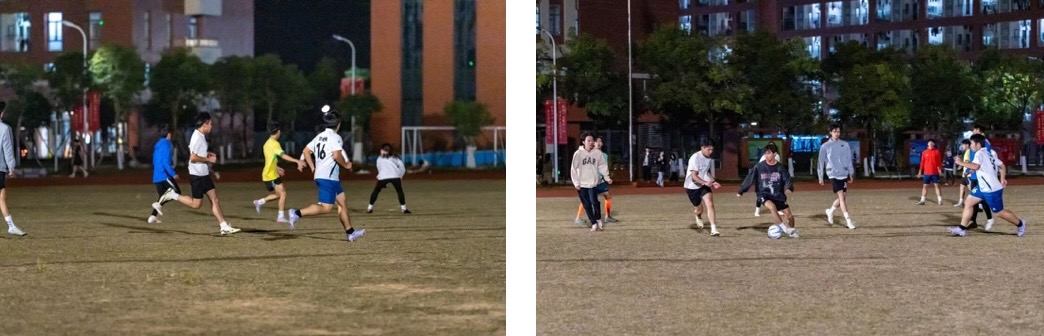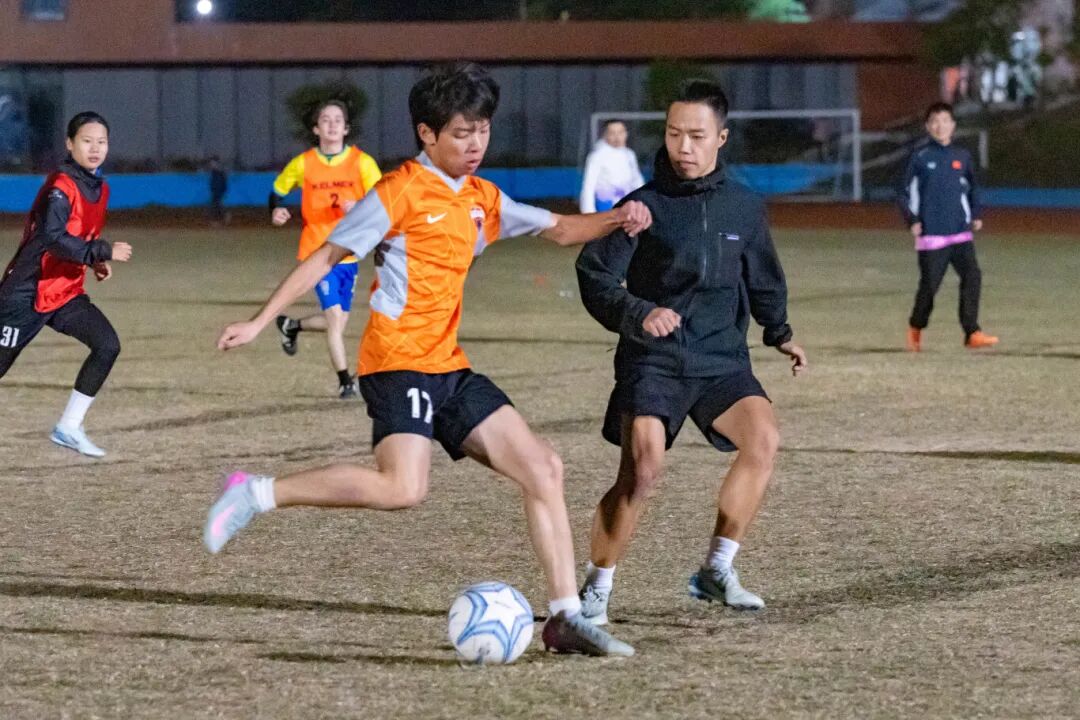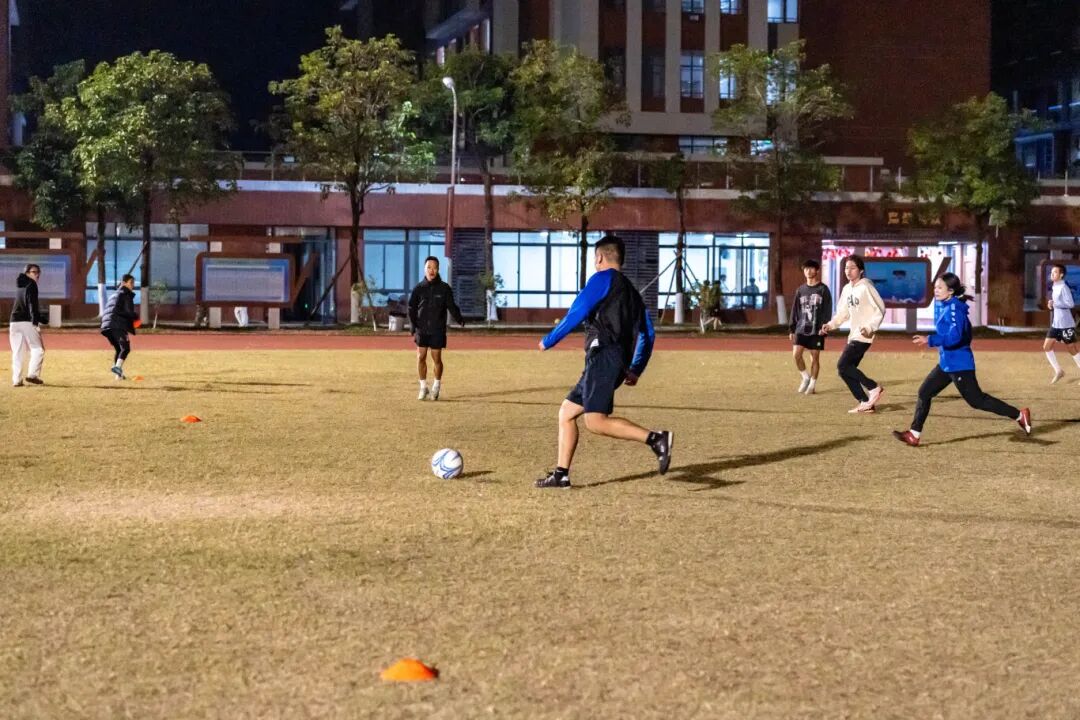 2025年度足球社团交流系列活动之中外师生交流赛在江门校区足球场顺利举行,学校男子足球队、女子足球队、留学生足球队及教职工足球队的30余名足球爱好者齐聚绿茵场。活动以分组轮番对阵的形式展开,师生在切磋球技的同时传递友谊,让赛场成为中外文化交流的桥梁,也让冬夜多了几分温度与活力。