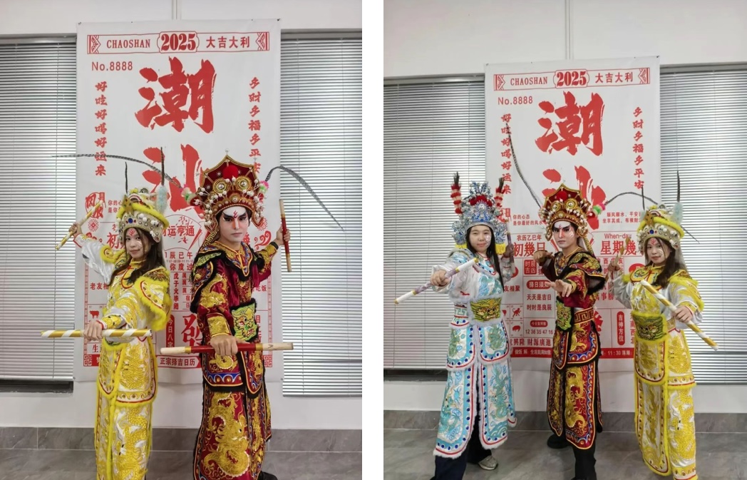 赛场之外,他们是“非遗学徒”。比赛间隙,国际学生们参与了潮汕英歌舞体验活动,亲手绘制脸谱、穿戴传统服饰,沉浸式感受角色背后的文化故事。来自越南的学生段玉庆表示:“穿上英歌舞的服装,我仿佛变成了故事中的英雄,这种文化体验让我对中国有了更深的理解。”