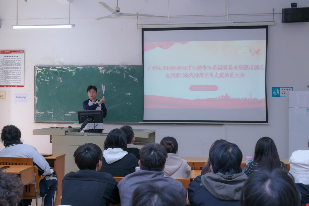 11月28日,学院召开出征动员大会。辅导员黄向荣详细解读酒店规章制度,强调“此次支援代表着学校形象,需以‘零差错’标准完成工作”。何洪健副院长在总结讲话中勉励学生:“残特奥会是展现拼搏精神与人文关怀的舞台,你们的每一份付出都将为赛事增添温度。”12月3日清晨,学院院长林红梅,副院长何洪健、谢锦权亲临现场送行。林红梅院长寄语:“希望你们用专业与热情,为残特奥会贡献华职力量!”