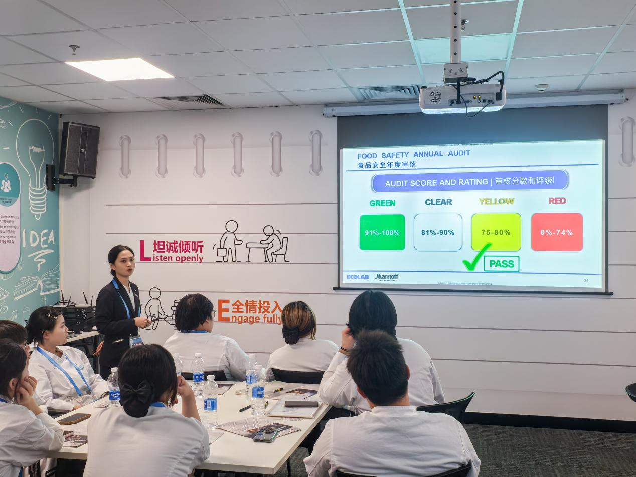 抵达酒店后,学生立即投入岗前培训。通过保密教育、食品安全法规学习及在线考核,全员以优异成绩通过入职评估。在酒店负责人的带领下,学生参观后厨、仓储及服务动线,熟悉赛事餐饮供应全流程。酒店方对我校学生表现出的高度纪律性、快速学习能力和主动服务意识给予了高度评价,充分肯定了学校的育人成效。