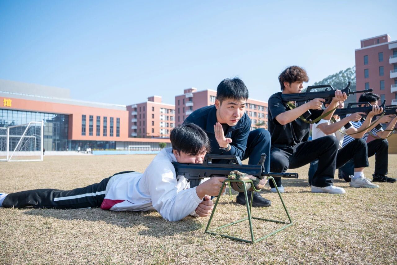 ▲梁伟鸿协助学校开展国防军事训练