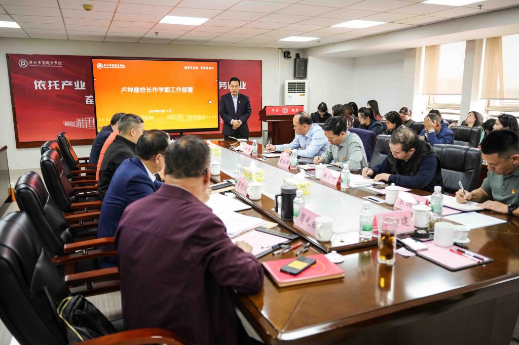 会上,卢坤建校长作工作部署。他围绕学校高质量发展核心目标,明确以学生为中心、聚焦岗位需求的办学导向,从课堂革命、产教融合、创业教育、文化育人、机制建设、能力提升等多个方面,对新学期重点工作作出具体安排,要求全校上下凝心聚力、真抓实干,将各项工作举措落到实处,推动学校办学发展再上新台阶。