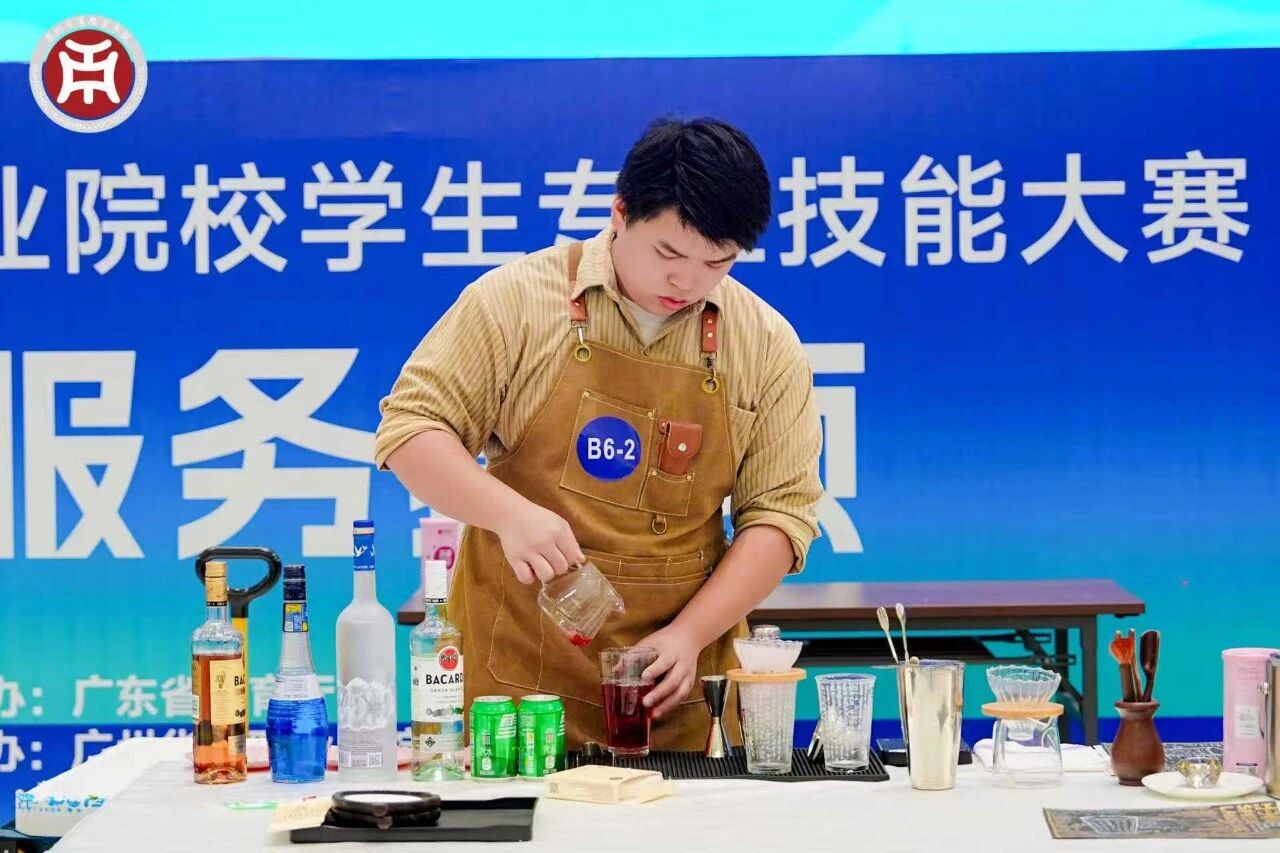 鸡尾酒调制与服务项目,要求选手创作一款自创鸡尾酒,并全程用英文完成调制与侍酒服务,充分展示创意设计、调酒技艺与国际化沟通能力。