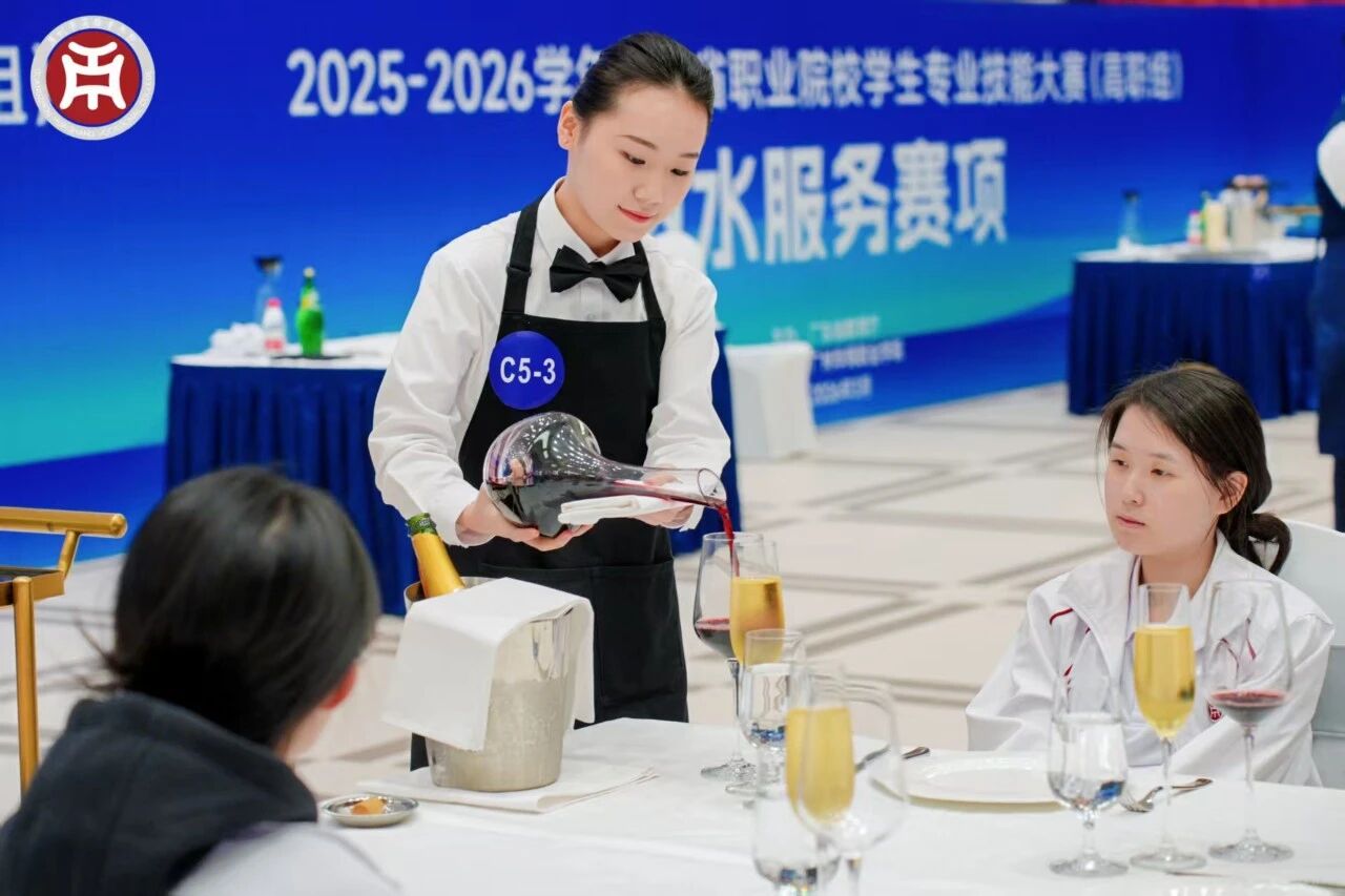 本次酒水服务赛项不仅是一次专业技能的大比拼,更是一场职业教育成果的集中展示。它以真实的职业情境为依托,推动教学标准与行业标准的深度对接,强化了学生对服务流程、职业规范和国际化表达的综合掌握。