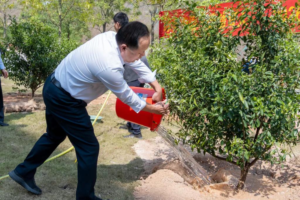 经过一个下午的辛勤劳作,150株新会茶枝柑树苗整齐挺立在中庭沃土之上,原本空旷的中庭,焕然一新,嫩绿的枝芽在春风中轻轻摇曳。植树结束后,师生们自觉清理现场,将工具擦拭干净、整齐归位,举手投足间彰显着劳动精神的润物无声。