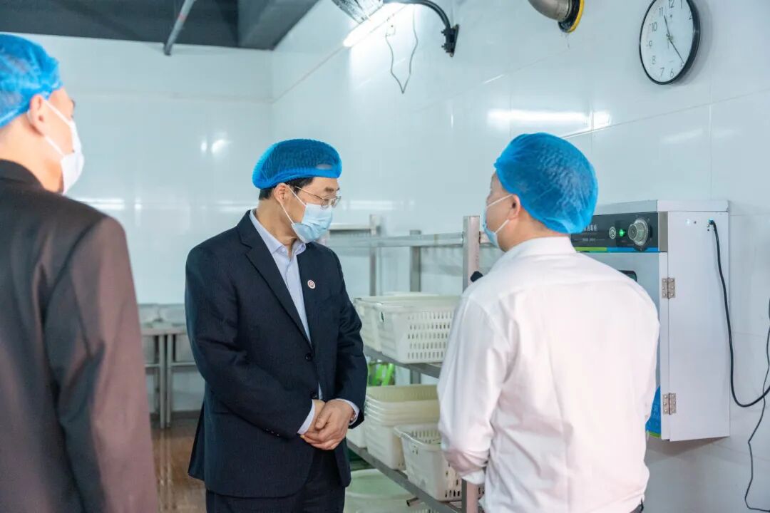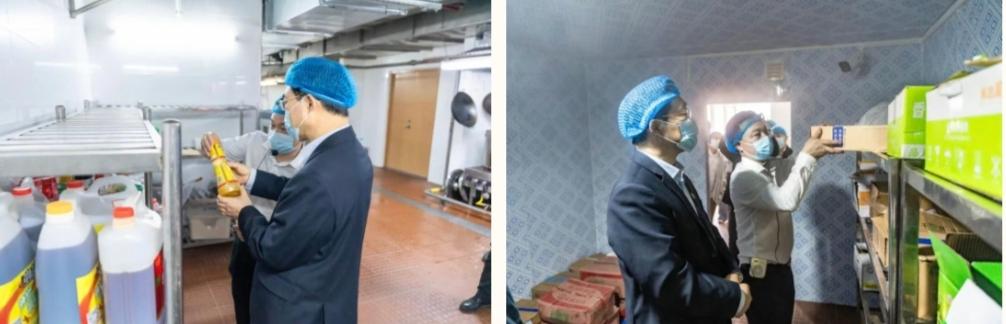 上午11时,校领导一行进入食堂后厨。他们沿食品加工流程动线,对清洗区、切配区、食品留样区、烹饪区、餐具洗消间、仓储区等关键区域,开展了全面细致的“全景式”检查。