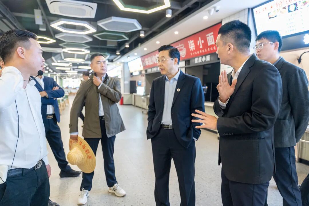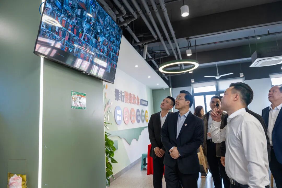 校领导一行在第二食堂大厅查看了食堂信息公示栏,并通过“互联网 + 明厨亮灶”智慧监管系统实时查看后厨各区域、各关键环节监控画面。卢坤建校长对食堂通过智能化手段实现“透明厨房、阳光操作”的做法予以高度肯定。